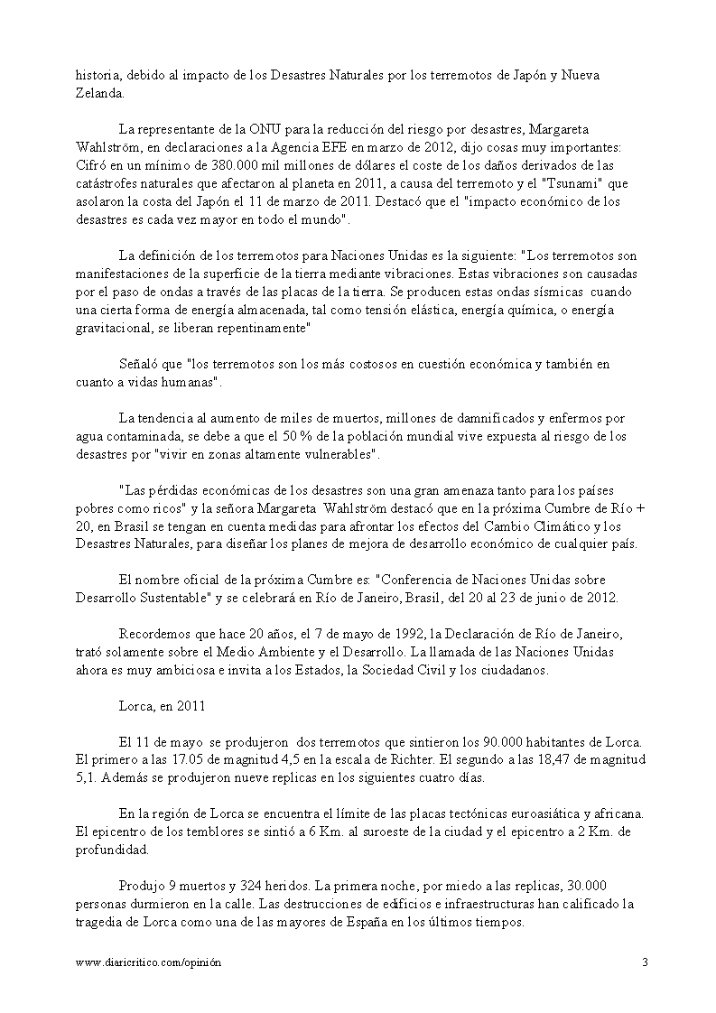 Desastres naturales: terremotos en Lorca 2011. Situación 2012 (I Parte)