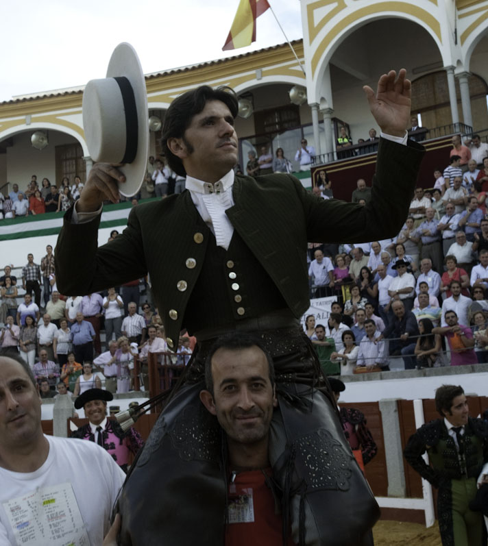 Terminó con califa con un par, tres cortas y unos vibrantes alardes adornándose con la suerte del teléfono. Los dos pinchazos y dos descabellos que necesitó para dar muerte al toro impidió un triunfo mayor.