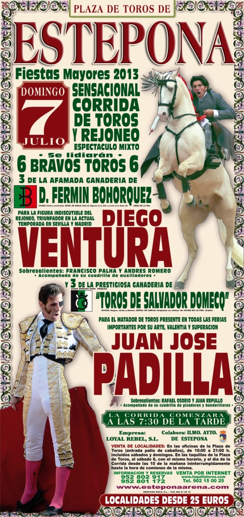 Diego Ventura y Juan José Padilla pondrán el broche de oro a las Fiestas Mayores de Estepona 2013