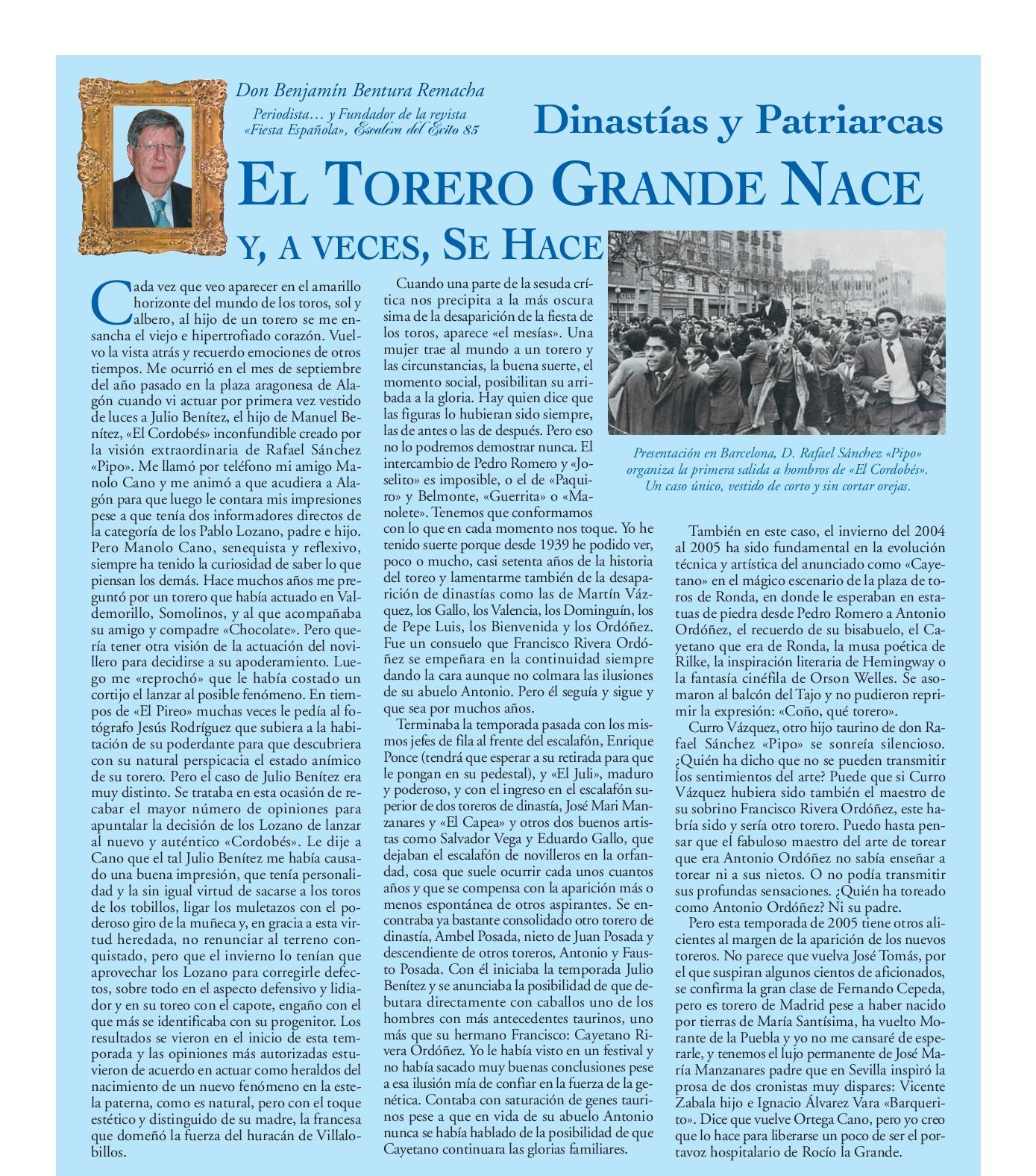 Dinastías y Patriarcas EL TORERO GRANDE NACE Y, A VECES, SE HACE