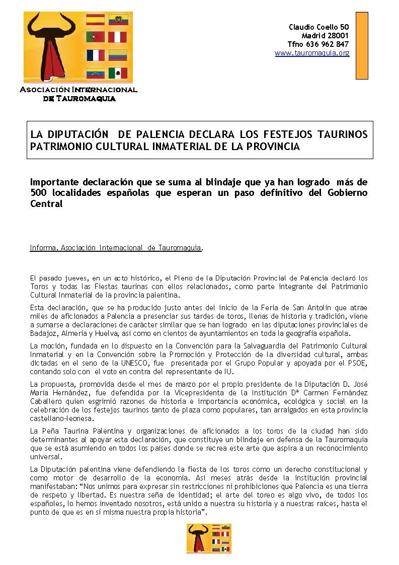 Diputación de Palencia reconoce los festejos taurinos de toda la provincia Patrimonio Cultural Inmaterial