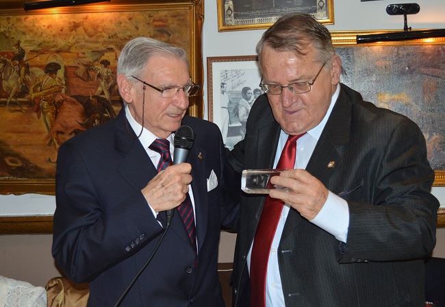 Emilio Morales, Vicepresidente de esta Peña, Presidente de la Peña el 7 y Escalera del Éxito 76, presentó el acto, y tras la tradicional y suculenta comida en El Rincón de Esteban, el presidente de la entidad Juan Sáez de Retana, hizo entrega del Talismán de la Suerte al gran aficionado de Casavieja (Ávila).