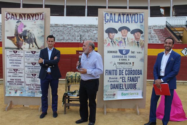 Ha tenido lugar la presentación de los carteles de la Feria de Calatayud. El multitudinario acto, presentado por el periodista David Casas, se ha desarrollado en la plaza de toros y ha contado con la presencia del matador de toros Iván Vicente, el empresario Ignacio Ríos, el Alcalde José Manuel Aranda y el Presidente del Patronato José María Lozano.