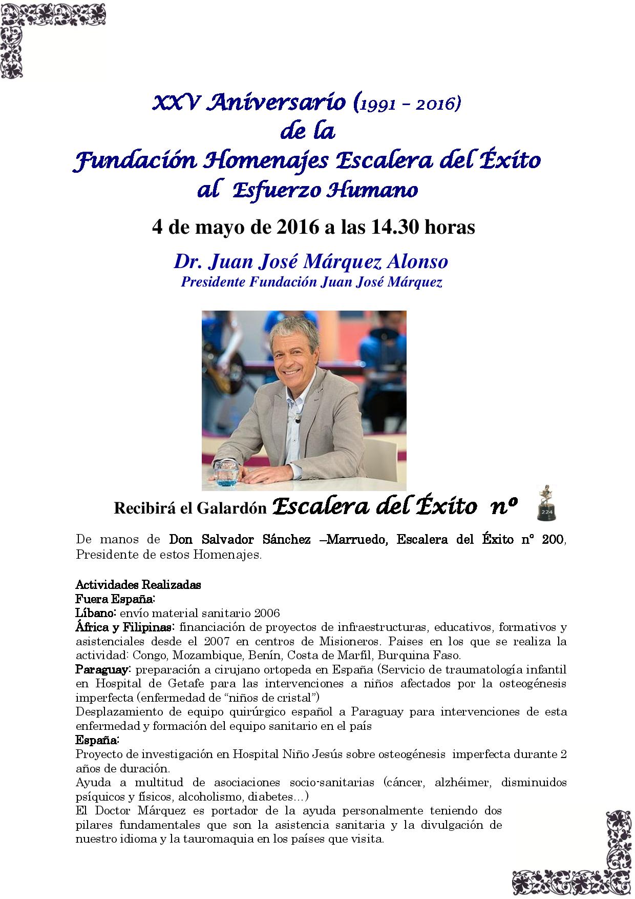 Dr. Juan José Márquez Alonso recibirá la Escalera del Éxito nº 224 el próximo 4 de mayo