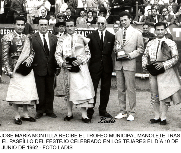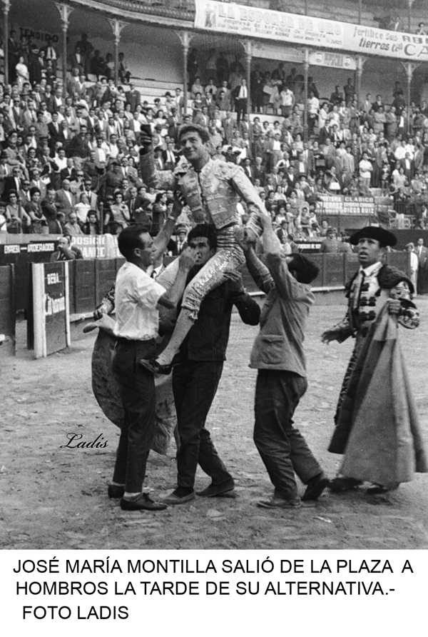 En la plaza de toros de “Los Tejares”, de Córdoba, la tarde del 26 de Mayo de 1962 el diestro José María Montilla (Escalera del Éxito 110), con un terno azul celeste y oro, se convierte en matador de toros de manos de Julio Aparicio que le cede los trastos con Jaime Ostos (Escalera del Éxito 25) de testigo. El toro del doctorado pertenecía a la ganadería de Francisco de Mora Figueroa (Jerez de la Frontera), negro zaíno, marcado con el nº 66, de 465 kilos de peso y atendía por “Avefría”. A este toro le cortó José María las dos orejas y al que cerró plaza una. Por esta completísima actuación fue declarado triunfador absoluto de la feria y ganador del preciado trofeo municipal “Manolete”.