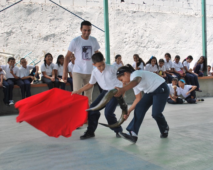 El matador de toros Hassan Rodriguez «El Califa de Aragua», continua con las actividades culturales y de promoción de la tauromaquia, el día viernes visito la U.E.P Nuestra Señora de Lourdes liceo y escuela de enseñanza de talleres pre vocacionales, de educación básica ubicada en el populoso barrio de Campo Alegre (Maracay), donde impartió una catedra taurina a los más jóvenes, en la cual se hizo un repaso de los orígenes de la tauromaquia como patrimonio cultural de nuestro pueblo, arraigado dentro de nuestras costumbres y como actividad cultural, de manera muy explicativa se hizo una descripción de los tres tercios de la lidia, su porqué de cada uno, de la misma manera se ejemplifico los valores del sacrificio, la constancia y la disciplina que tienen que tener los toreros para llegar a lo más alto, finalizó con una práctica de toreo de salón donde se le explicó los nombre de los pases, lances y quites existentes tanto con el capote como con la muleta, momento de mayor emotividad ya que el interés mostrado por participar estuvo presente en los niños quienes se divirtieron haciendo de toro y torero.