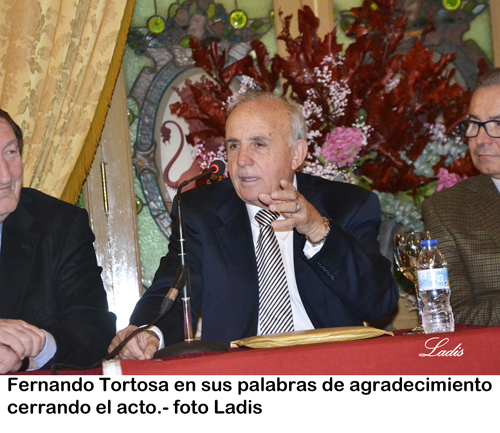 Le siguió un rosario de intervenciones: Manuel Cano «El Pireo», Agustín Castellano «El Puri», Rafael González «Chiquilín», Alfonso Morales, Celso Ortíz, Eliseo Morán, Manuel Sánchez Saco, Antonio Tejero y Juan Antonio García «El Califa». Todos coincidieron en las magníficas cualidades como torero y en las grandes virtudes humanas de Fernando Tortosa, quien al final se dirigió a los presentes, visiblemente emocionado, agradeciendo la asistencia de todos y exponiendo lo feliz que era cuando toreaba pues era un sueño que anhelaba desde pequeño y que por fin se hizo realidad.