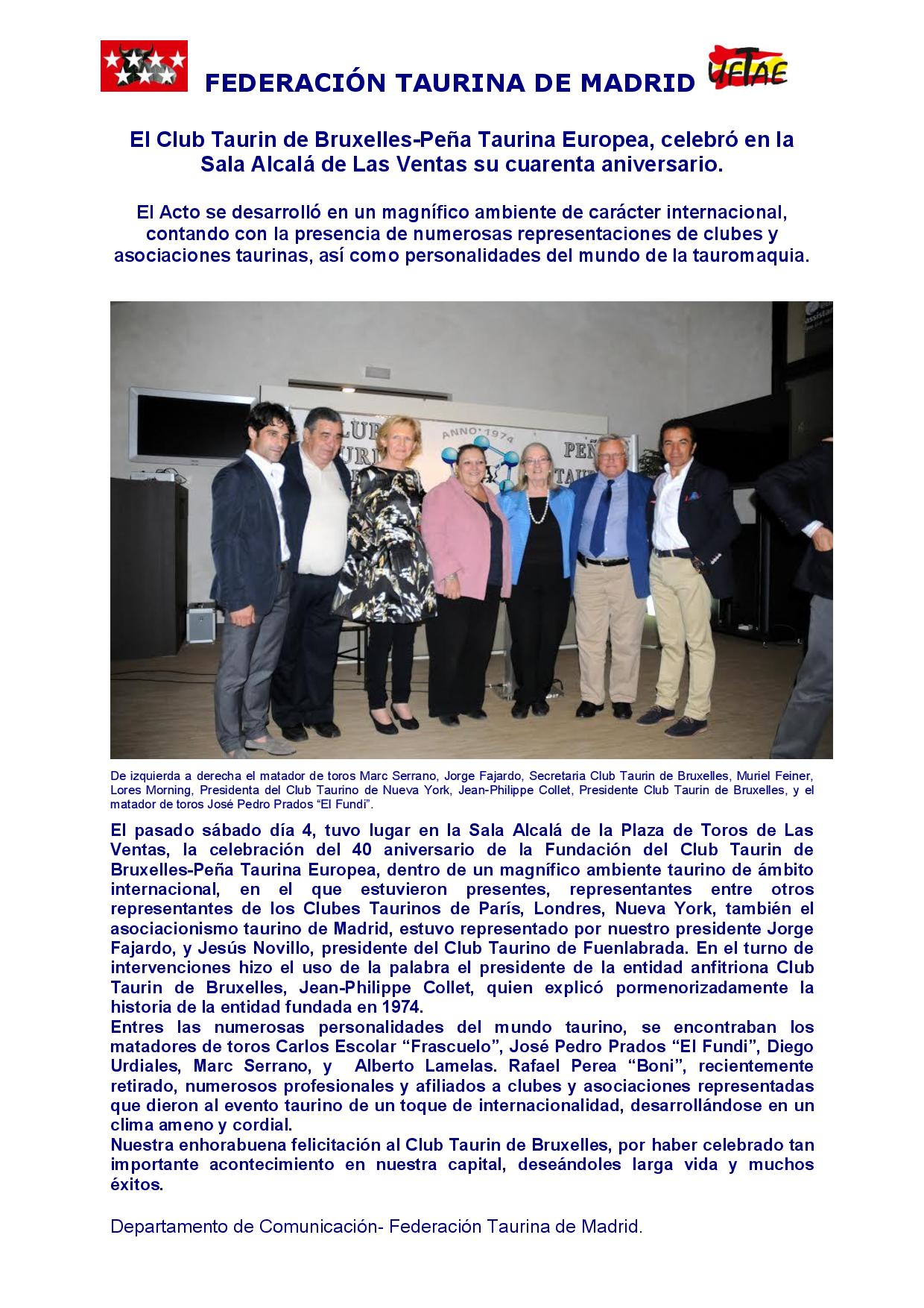 El Club Taurin de Bruxelles-Peña Taurina Europea, celebró en la Sala Alcalá de Las Ventas su cuarenta aniversario