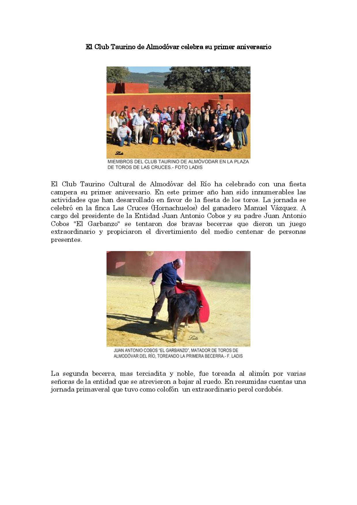El Club Taurino de Almodóvar celebra su primer aniversario