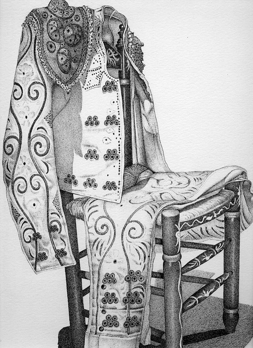 A pesar de todas sus carencias y de su fealdad, el toro – muy musculado – daba sensación de seriedad y de peligro; sobre todo por su cara fosca, seria y de mal humor, con las greñas llegándole hasta los ojos; estos eran saltones, inyectados en sangre y en continuo movimiento.