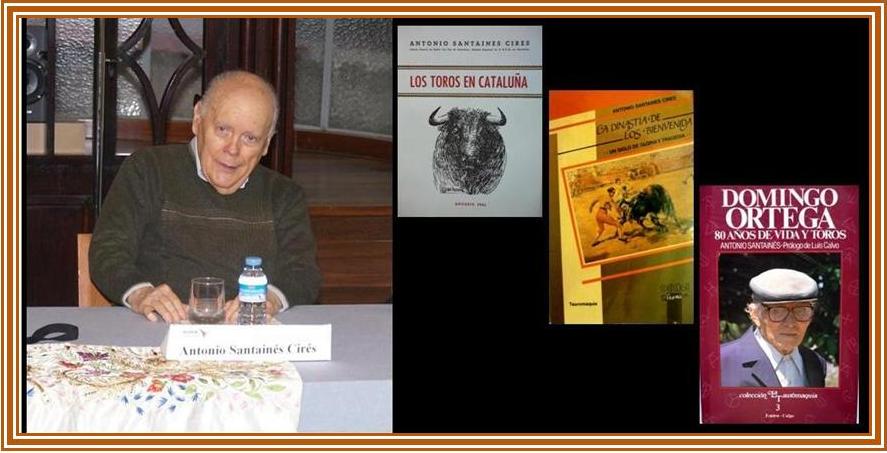 En mi vida he llegado a una máxima inapelable para regular mis amistades, y esta es la siguiente: LA HUMILDAD Y LA SINCERIDAD SON PREMISAS INDISPENSABLES PARA LA AMISTAD. Por eso admiro al profesor decano del periodismo taurino catalán, don Antonio Santainés Cirés. Hace más de 20 años que lo conozco de vista y desde hace unos dos, mi amistad y mi trato han sido más personal y cercano. En todo este periodo de tiempo, nunca le he visto en público alardear, vanagloriarse, buscar la admiración por despecho o reivindicar un protagonismo para ser venerado. Y, créanme que motivos, vivencias y cátedra tiene a raudales, para destacar e impartir lecciones a muchos perdonavidas que van de grandes críticos, escritores y eruditos máster de la tauromaquia. Formado por la tinta de grandes plumas como la de Don Ventura, Uno al Sesgo, K-hito, Corrochano, Azares etc. sus reseñas y artículos tienen el sello personal de su forma de ver las cosas, independiente y liberal, como sus tres libros, Los Toros en Cataluña, La Dinastía de los Bienvenidas “un siglo de gloria y tragedia” y Domingo Ortega “80 años de vida y toros”, de obligatoria lectura para todo aquel que deseé una formación taurina avanzada.