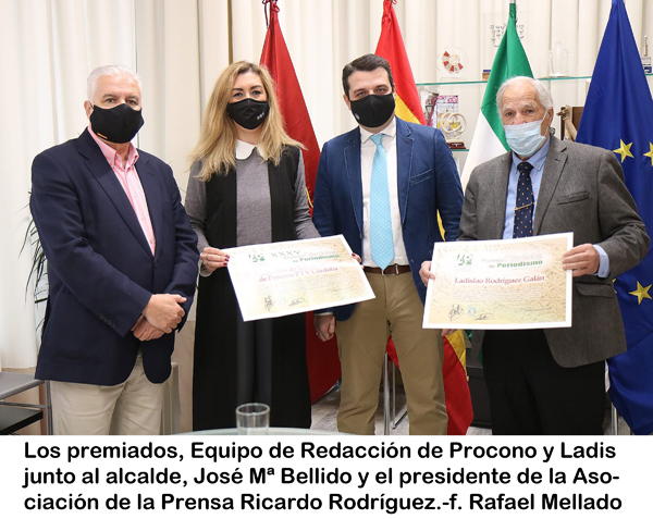 El Alcalde de Córdoba, José María Bellido, quiso compartir unos minutos con los premiados a los que recibió, junto al presidente de Asprencor, en el despacho de la Alcaldía. Bellido felicitó a los miembros de la redacción de Procono, representada en la cita por la directora María Ángeles Mellado, por el despliegue realizado durante el confinamiento, resaltando la variedad de los magazines y la cobertura informativa realizada. A Ladis le manifestó su alegría por el premio que sumaba a los que posee el veterano profesional resaltando que es «muy merecido» y no dudó, «tal como ha hecho durante los últimos sesenta años, que seguirá viviendo en directo la actualidad de Córdoba».