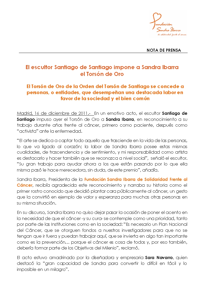 El escultor Santiago de Santiago impone a Sandra Ibarra