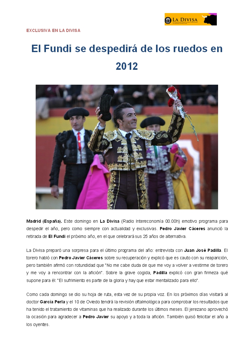 El Fundi se despedirá de los ruedos en 2012