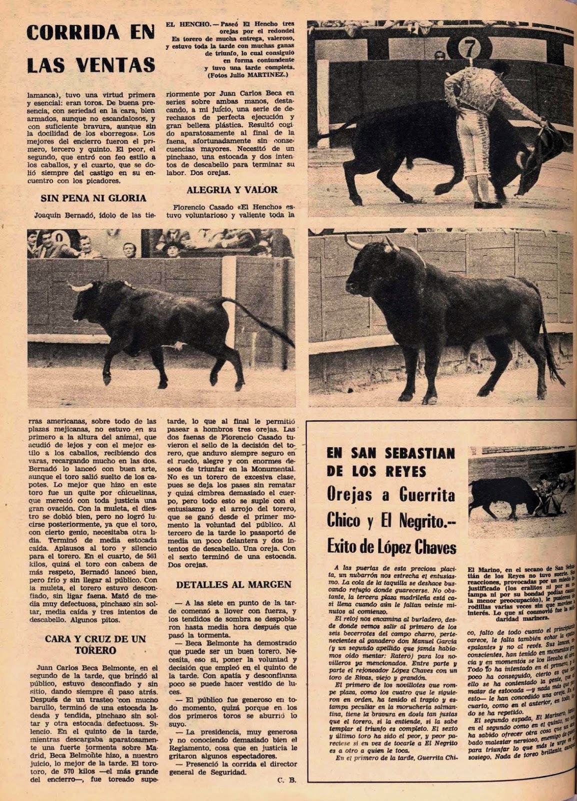 “El Hencho» de su vida privada solía hablar poco y de toros aún menos. Su tiempo lo dedicaba exclusivamente a beber y fumar. Un día hablando de aquellas efemérides, por casualidad saltó la liebre, y yo le fui sacando…sacando, hasta que decidió contarme su historia vestido de luces.