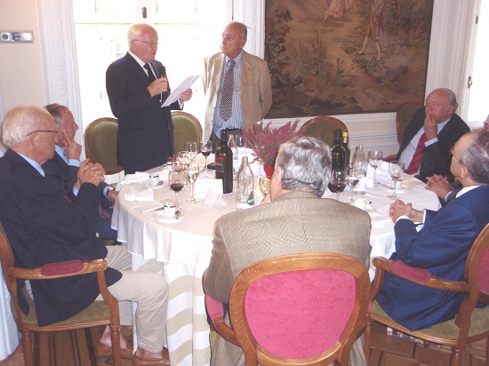 A los postres fue el presidente de la Tertulia, D. Felipe Díaz Murillo (Escalera del Éxito nº 112), el encargado de glosar la figura del homenajeado dando las gracias al Embajador de Francia en España que estuvo presente y es un ejemplo para la afición.