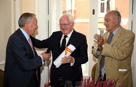 Al finalizar el acto, el presidente de la Tertulia don Felipe Díaz Murillo (Escalera del Éxito nº 112) impuso a M. Michel Vauzelle el “Madroño de Albero”, símbolo y emblema de la Tertulia y D. José María Álvarez del Manzano (Escalera del Éxito nº 54), que fuera alcalde de Madrid, le entregó un Diploma acreditativo.