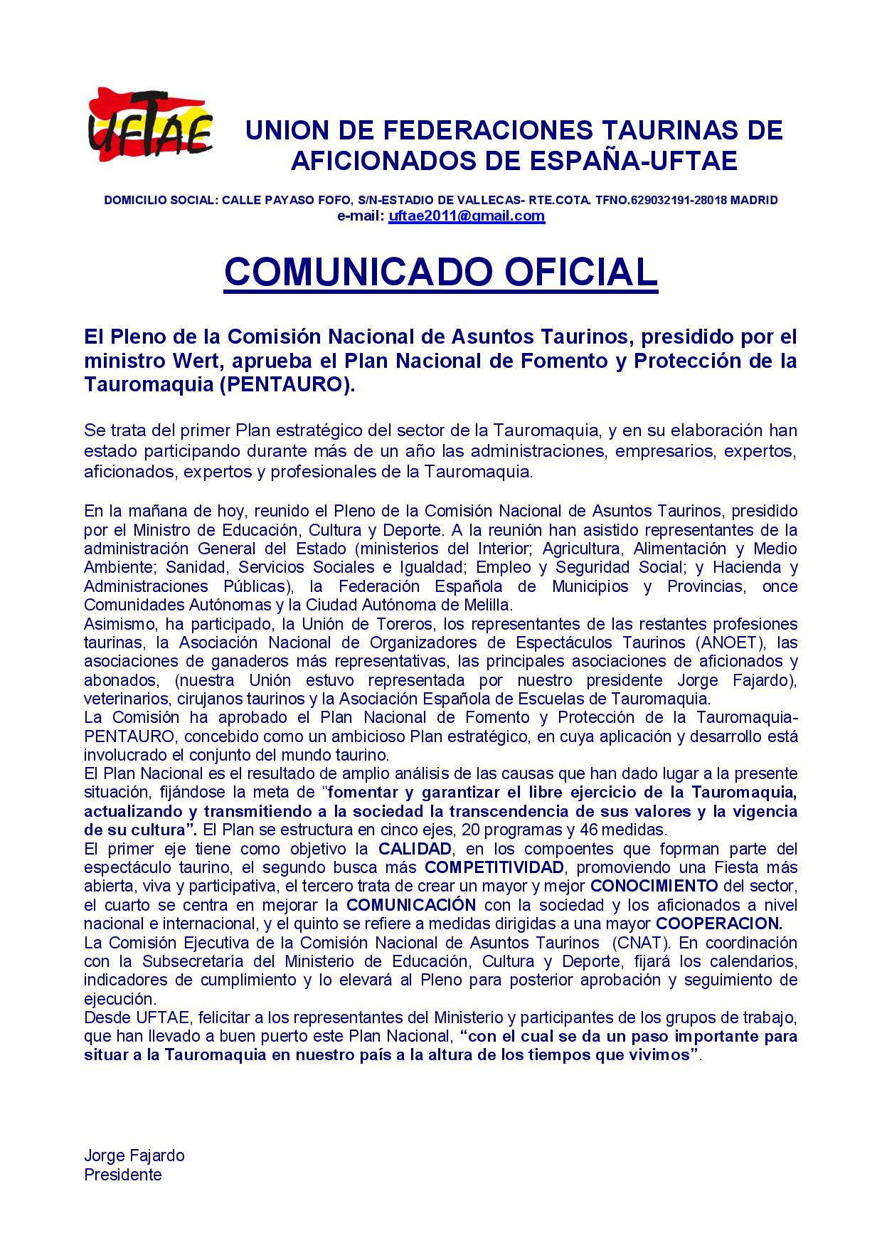 El Pleno de la Comisión Nacional de Asuntos Taurinos aprueba el Plan Nacional de Fomento y Protección de la Tauromaquia