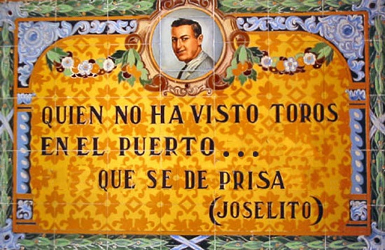González Rodríguez subraya que, mientras salían a relucir plazas como las de Madrid, Sevilla, Ronda o Bilbao, Joselito pronunció su máxima, sentenciando el debate, aforismo inmortalizado en un azulejo en el cañón del coso portuense, “palabras que han quedado para la historia y que constituyen un mástil al que nos agarramos con muchísima fuerza en el mundo taurino local para corroborar la grandeza de nuestro coso y de la ciudad con los días de festejo, pues su comentario incluía el ambiente que se generaba los días de corrida en todo El Puerto”.