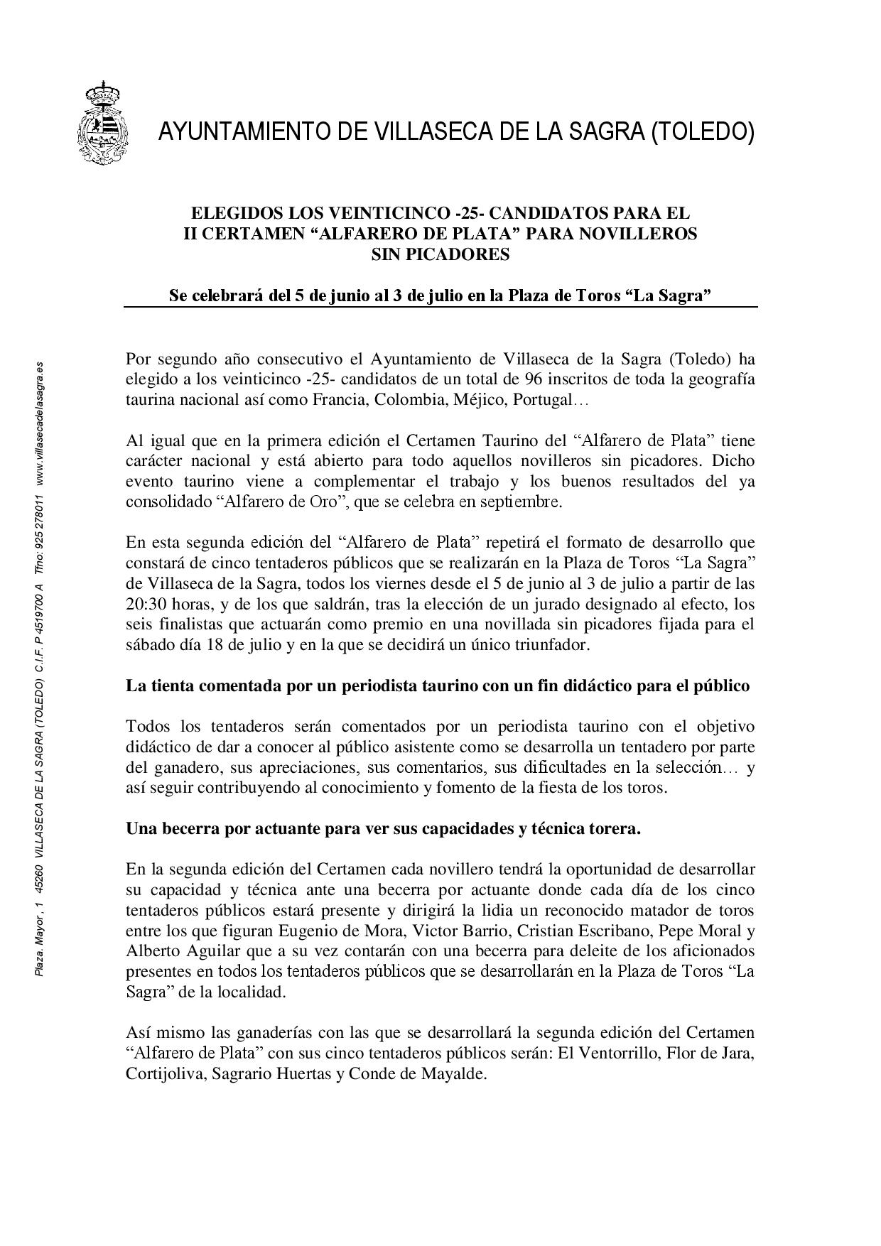 Elegidos los 25 novilleros para el II Certamen Alfarero de Plata Villaseca de la Sagra