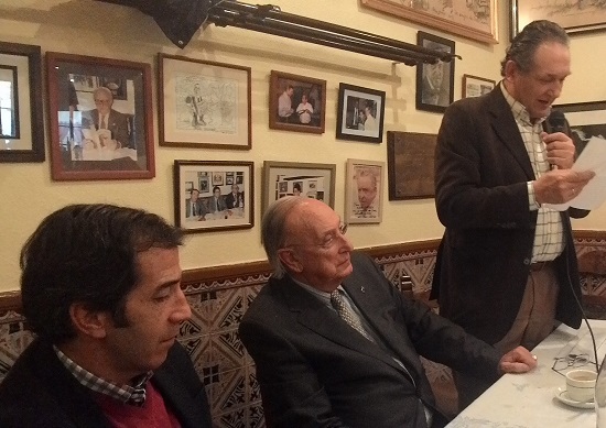 Antes de tomar asiento, el presidente de la Tertulia, don Felipe Díaz Murillo (escalera del Éxito nº 112) se encargó de dar la bienvenida a los allí reunidos y las gracias a Juan Mora la presencia y por aceptar el homenaje cuando le fue propuesto.