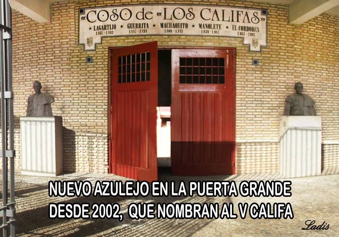 Con el nombramiento de Manuel Benítez «El Cordobés» como V Califa del toreo en 2002, se tuvo que cambiar el azulejo de la Puerta Grande al tener que incluir su nombre en el nuevo.