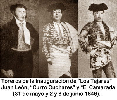 En estos primeros festejos, que comenzaron a las cuatro de la tarde, actuaron los diestros Juan León, de Sevilla, Fco. Arjona «Cúchares», de Madrid, y Antonio de Luque «El Camarada», de Córdoba. Para este acontecimiento los ganaderos Plácido de Comesaña (Sevilla), Manuel Siguri (Sevilla), Manuel Suárez (Coria del Río) y Francisco Escobedo (Martos) enviaron seis toros cada uno, en total 24 reses, lidiándose 8 cada día.
