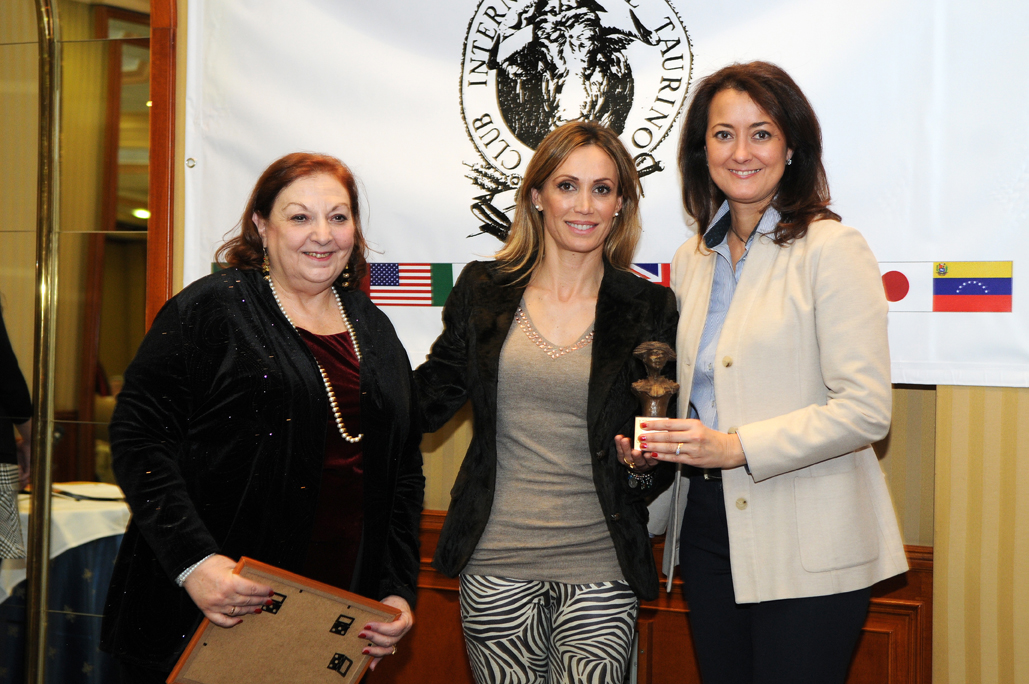 La torero Cristina Sánchez, que asistió acompañada de sus dos hijos, Alejandro y Antonio, y su marido, Alejandro da Silva, recibió el busto torero que entrega el Club a sus homenajeados, obra del escultor “Janel”, de manos de la Concejala de Madrid, delegada del Área de Familia, Servicios Sociales y Participación Ciudadana, María Dolores Navarro (Escalera del Éxito 171), que se refirió a que precisamente al día siguiente se celebra el Día Internacional de la Mujer y Cristina es un ejemplo del esfuerzo para llegar a lo más alta en un mundo muy difícil para la mujer, como es el mundo taurino. Por su parte, Cristina Sánchez agradeció las palabras de Lola Navarro y exhortó a los presentes a defender la Tauromaquia.