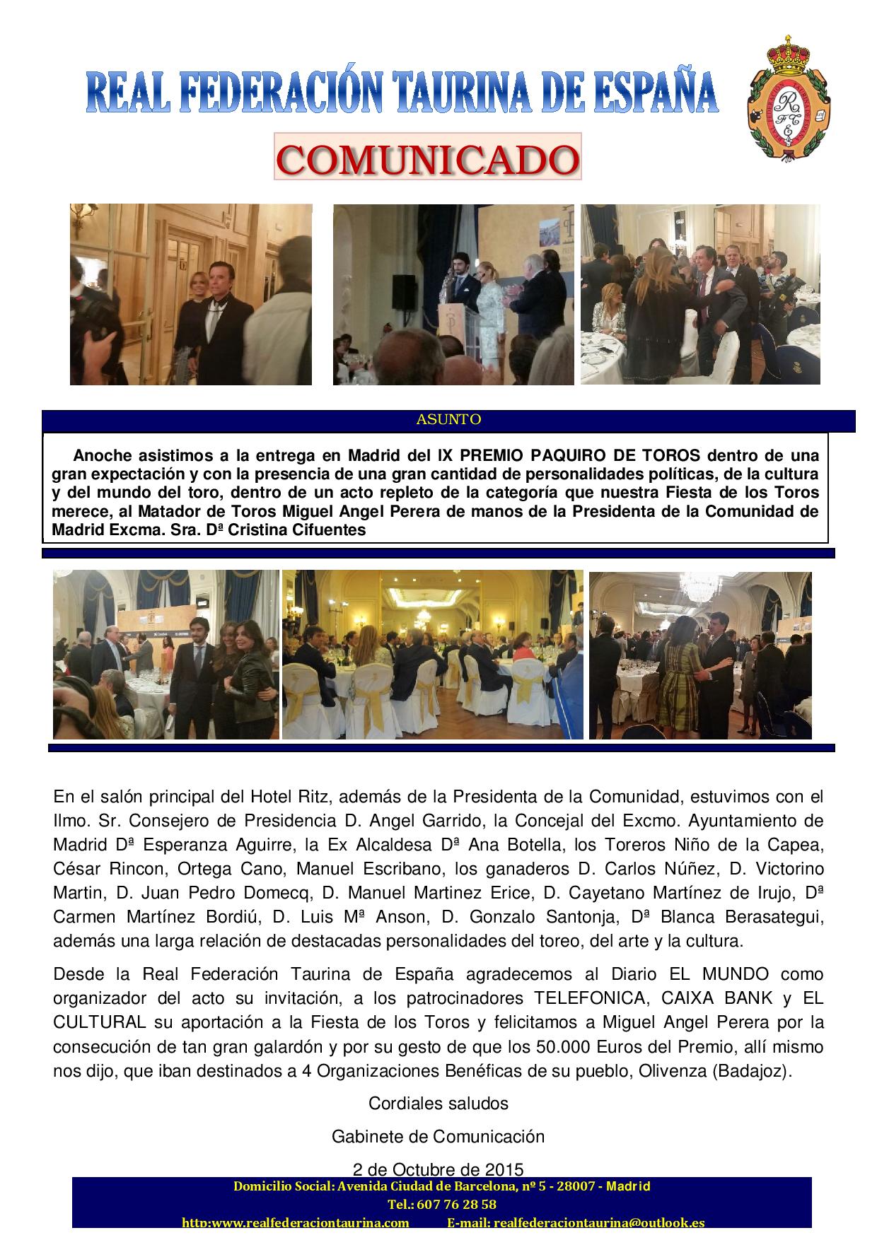Entregados IX Premio Paquiro de Toros