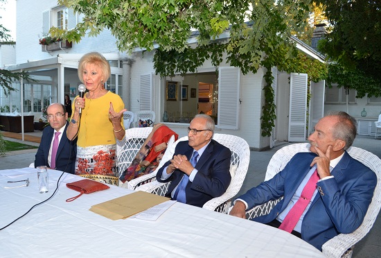 Don Rafael Campos de España y Marsili, Doña Rosa Basante Pol (Escalera del Éxito 168) y marido; Don Rafael Ramos Gil (Escalera del Éxito 60); S. E. Sr. Don Yuri P. Korchagin (Escalera del Éxito 226) y señora; Don David Shohet Elías (Escalera del Éxito 116) y señora en compañía de Doña Beatriz Badorrey Martín (Escalera del Éxito 219) y el resto de los participantes