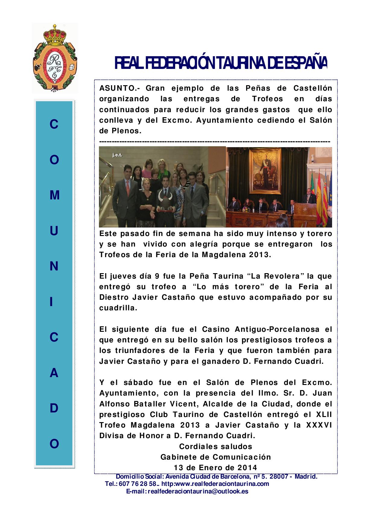 Entregados los Trofeos de la Feria de la Magdalena 2013