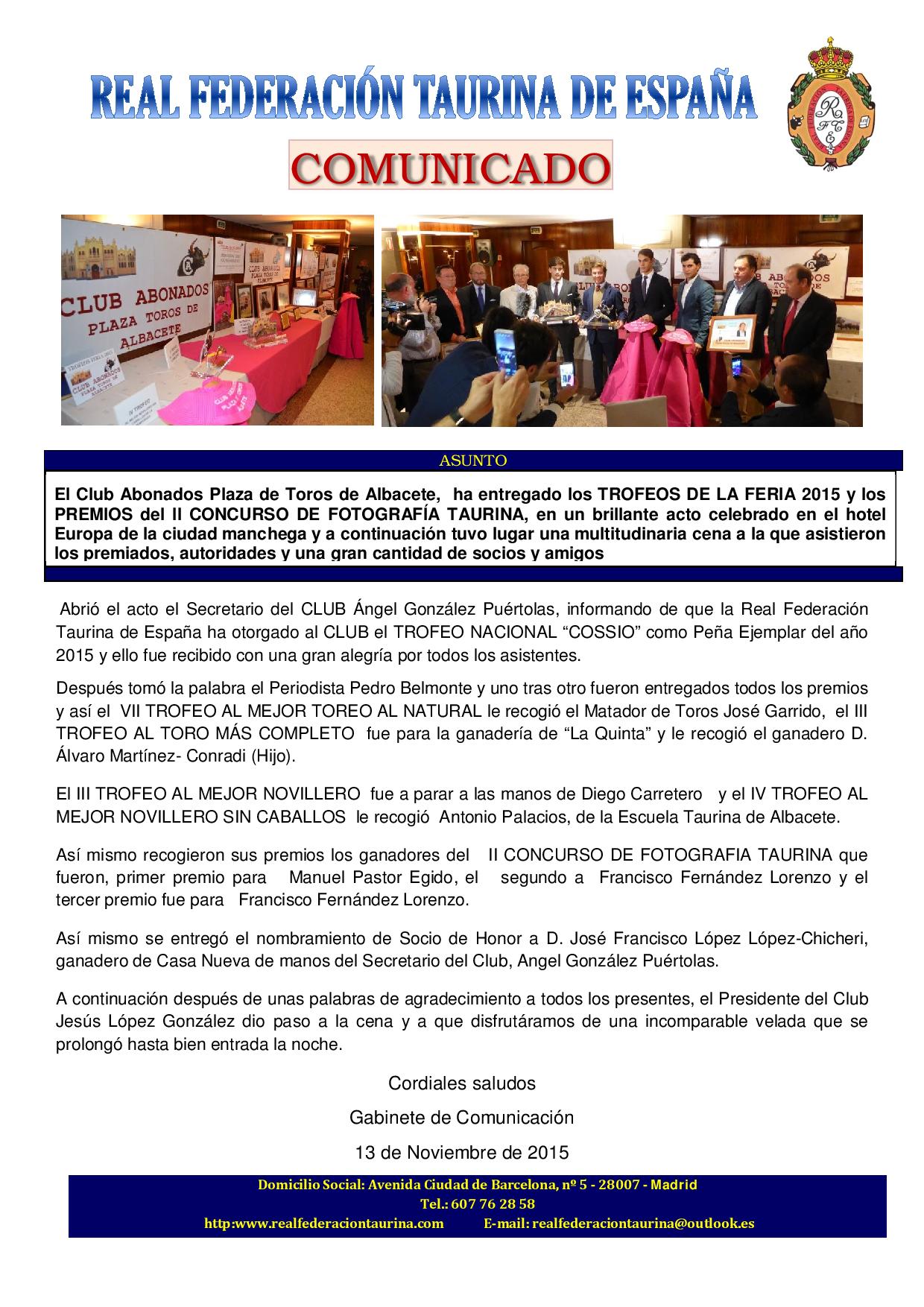 Entregados los Trofeos del Club Abonados Plaza de Toros de Albacete