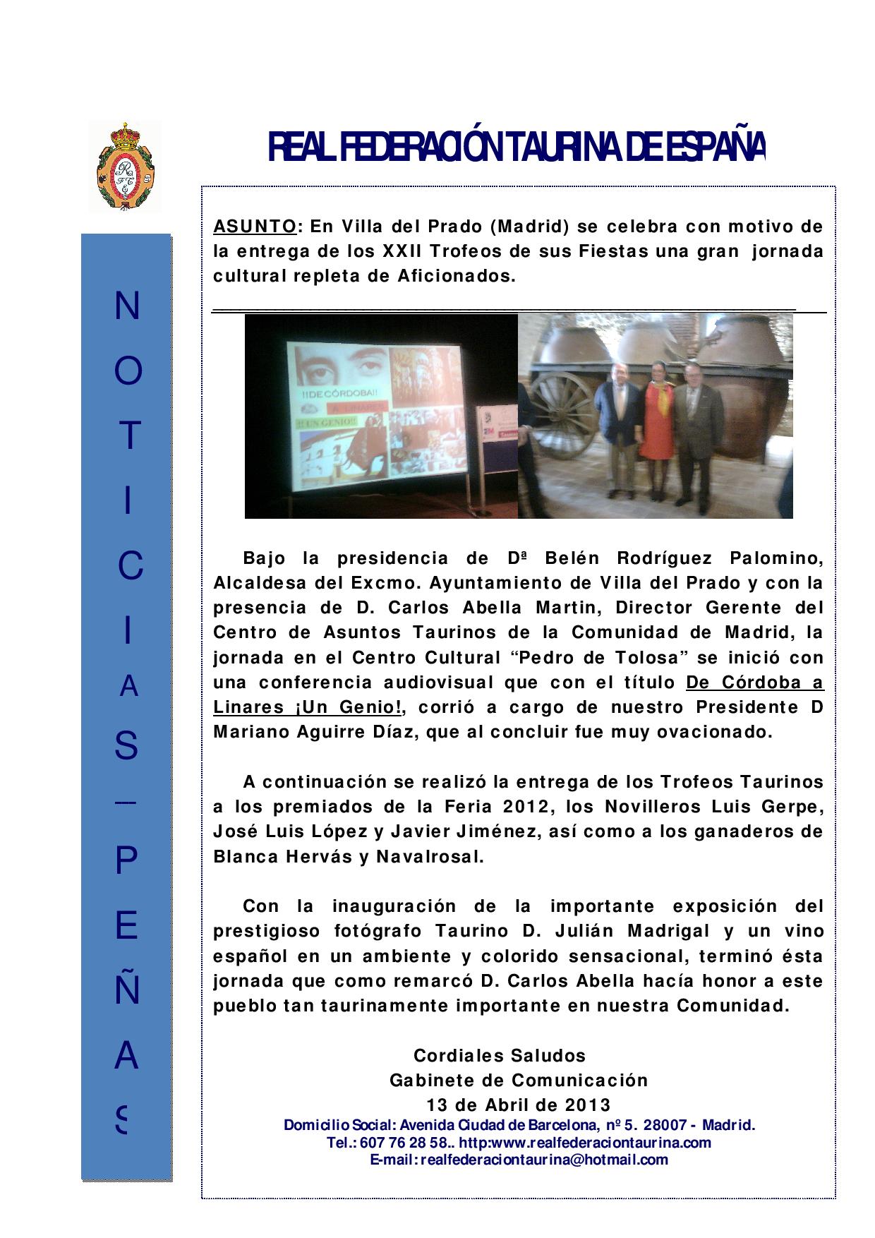 Entregados Premios Taurinos en Villa del Prado (Madrid)