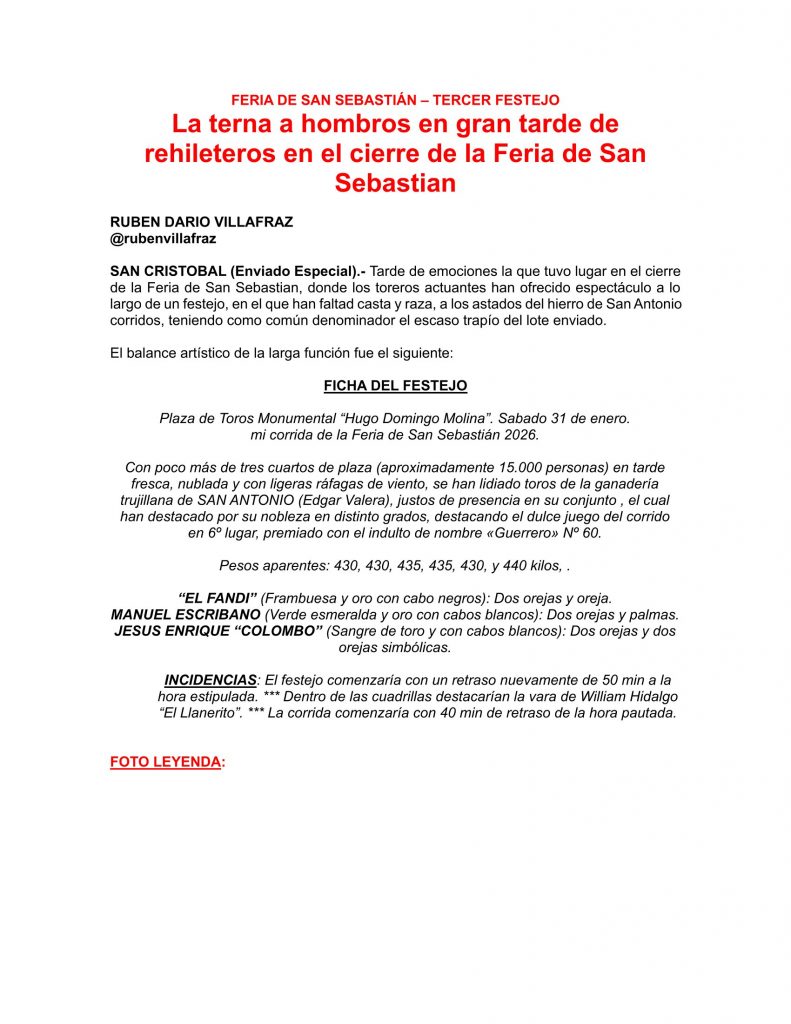 TERCER FESTEJO. La terna a hombros en gran tarde de rehileteros en el cierre de la Feria de San Sebastian – Para + info haz clic👆 🇪🇸