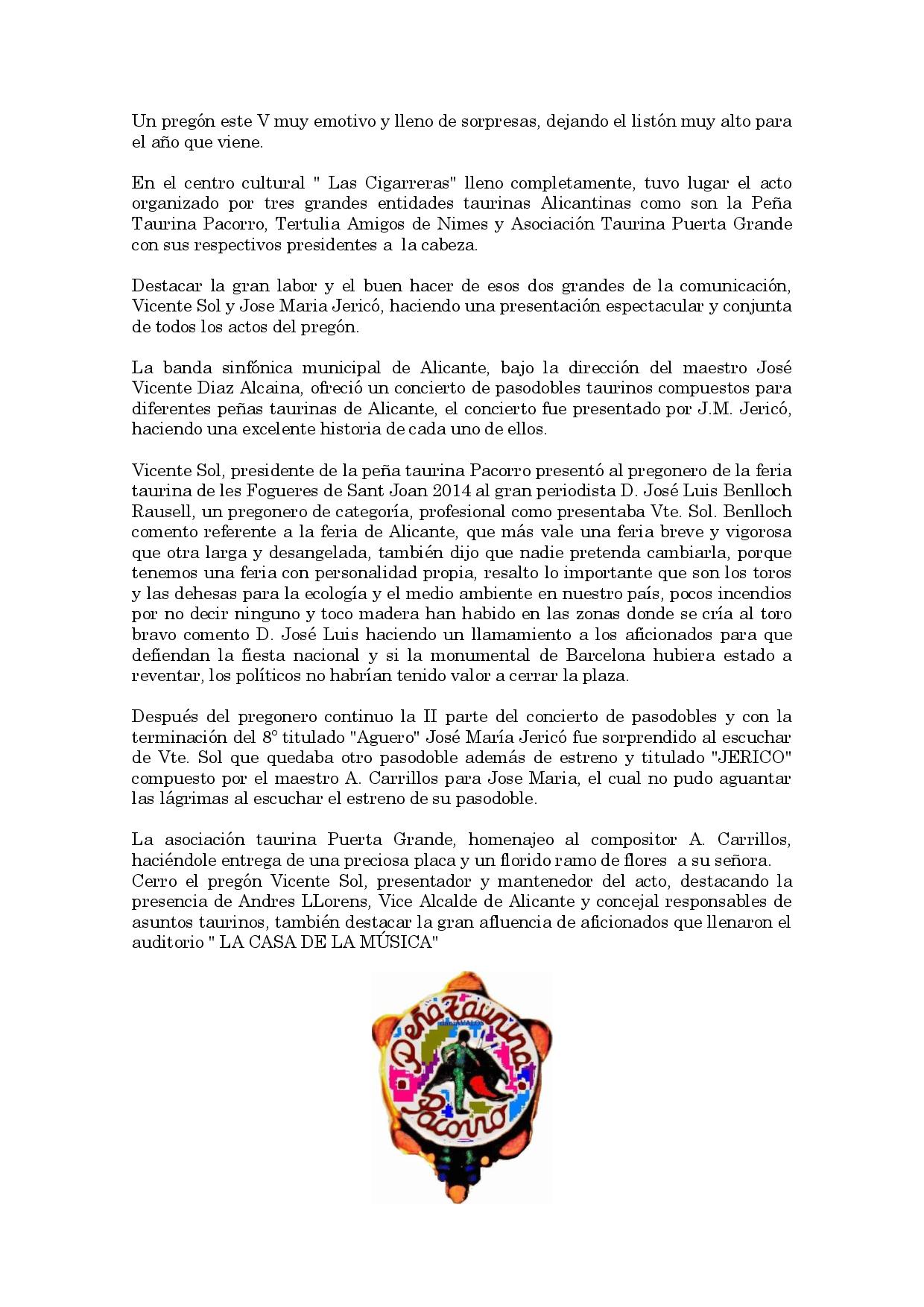 Espectacular Pregón de la Feria Taurina de Alicante por Jose Luis Benlloch