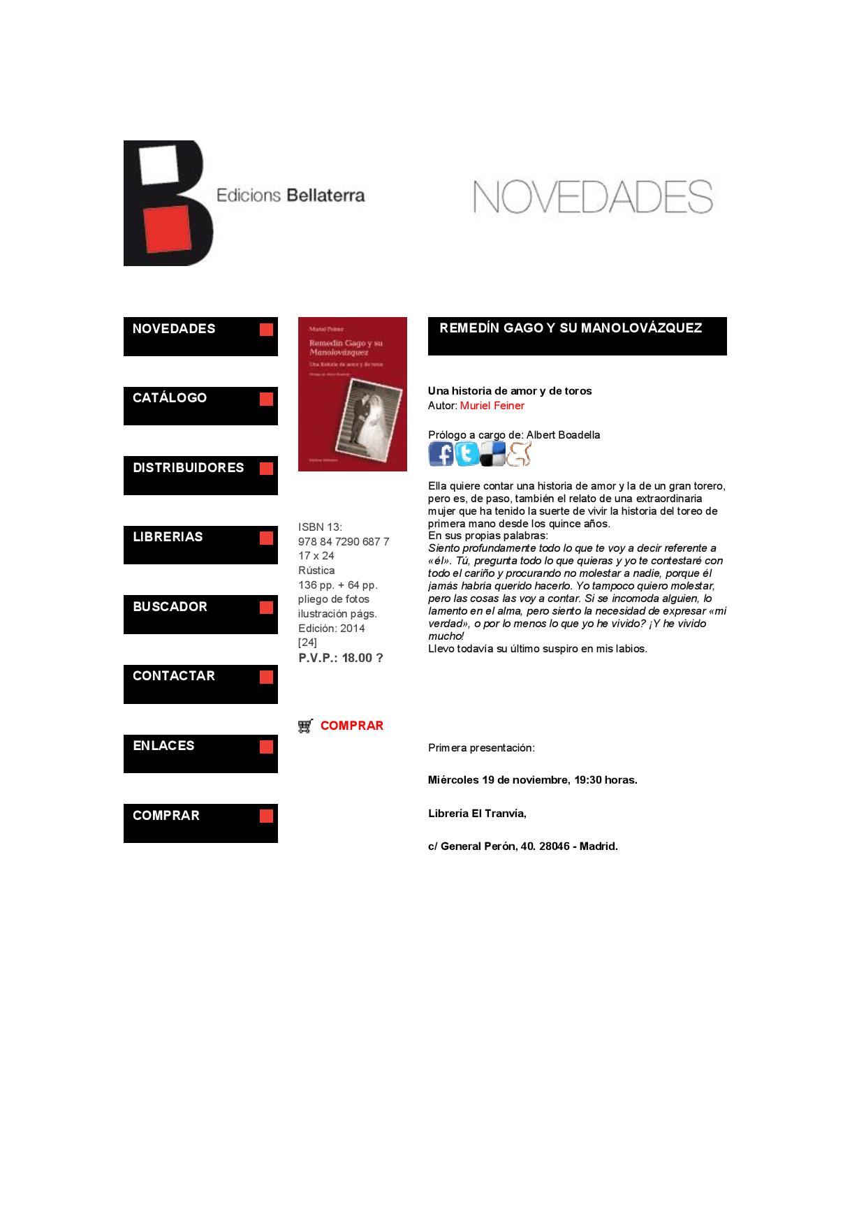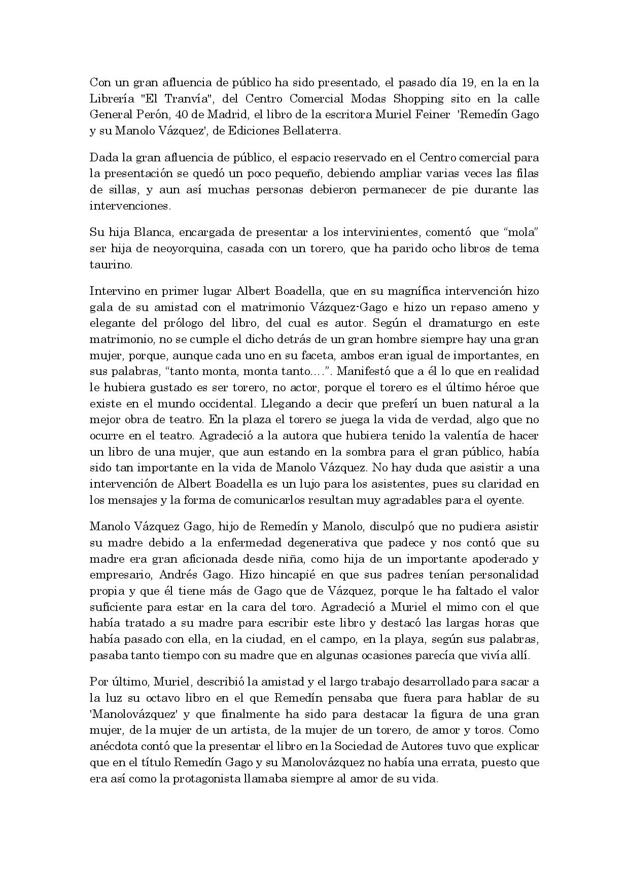 Exitosa presentación del libro REMEDÍN GAGO Y SU MANOLOVÁZQUEZ, de la autora neoyorquina Muriel Feiner (Un Romántico del ToreoRafael Sánchez Pipo