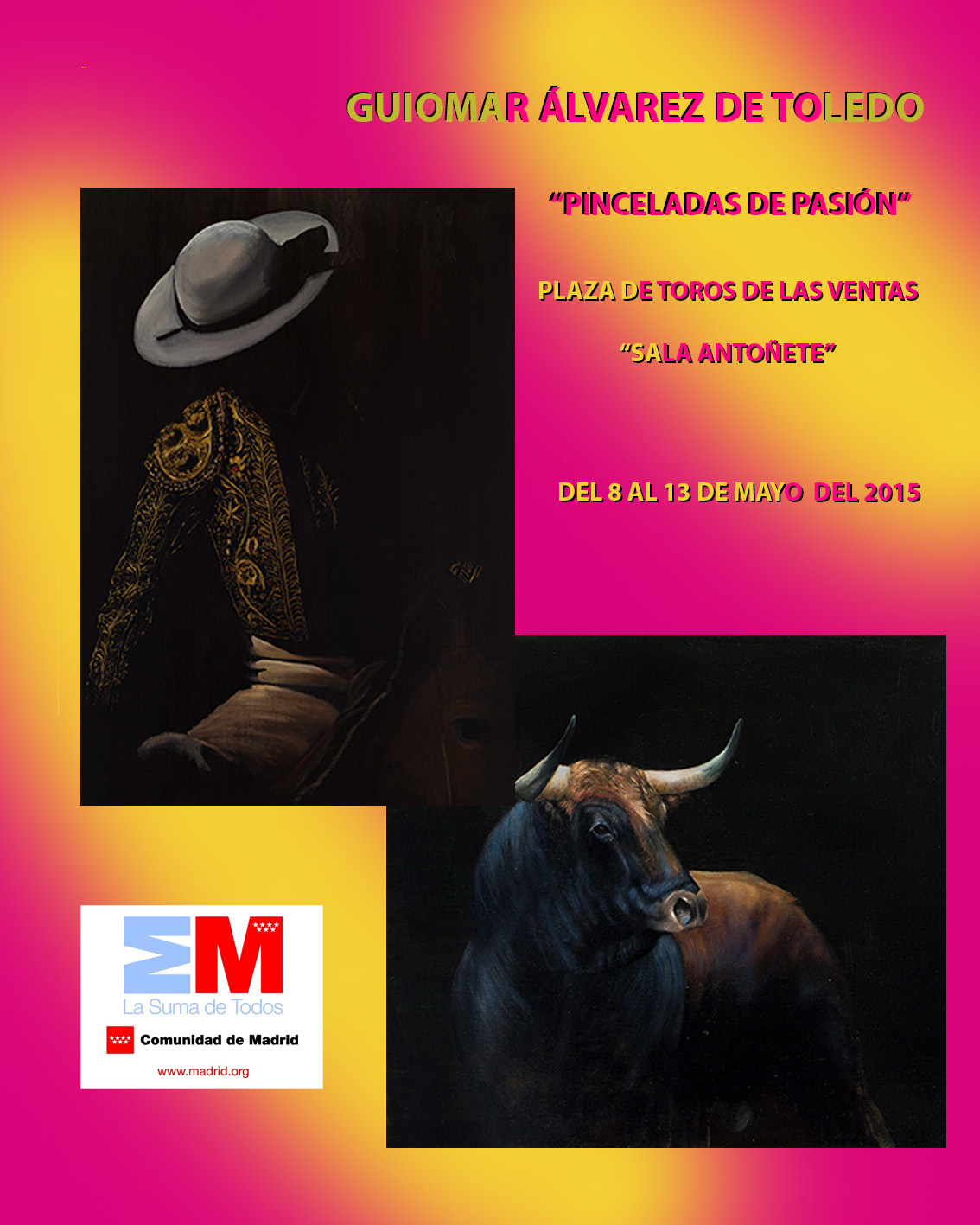 Desde hoy 8 de mayo y hasta el miércoles 13 del mismo mes, la sala “Antoñete” de la plaza de toros de Las Ventas acoge una exposición de pinturas de Guiomar Álvarez de Toledo. Esta artista nacida en Madrid , ha llevado a cabo su formación pictórica principalmente en Bruselas, Estrasburgo y Madrid, habiendo realizado cursos de pintura con Antonio López y Guillermo Muñoz Vera.