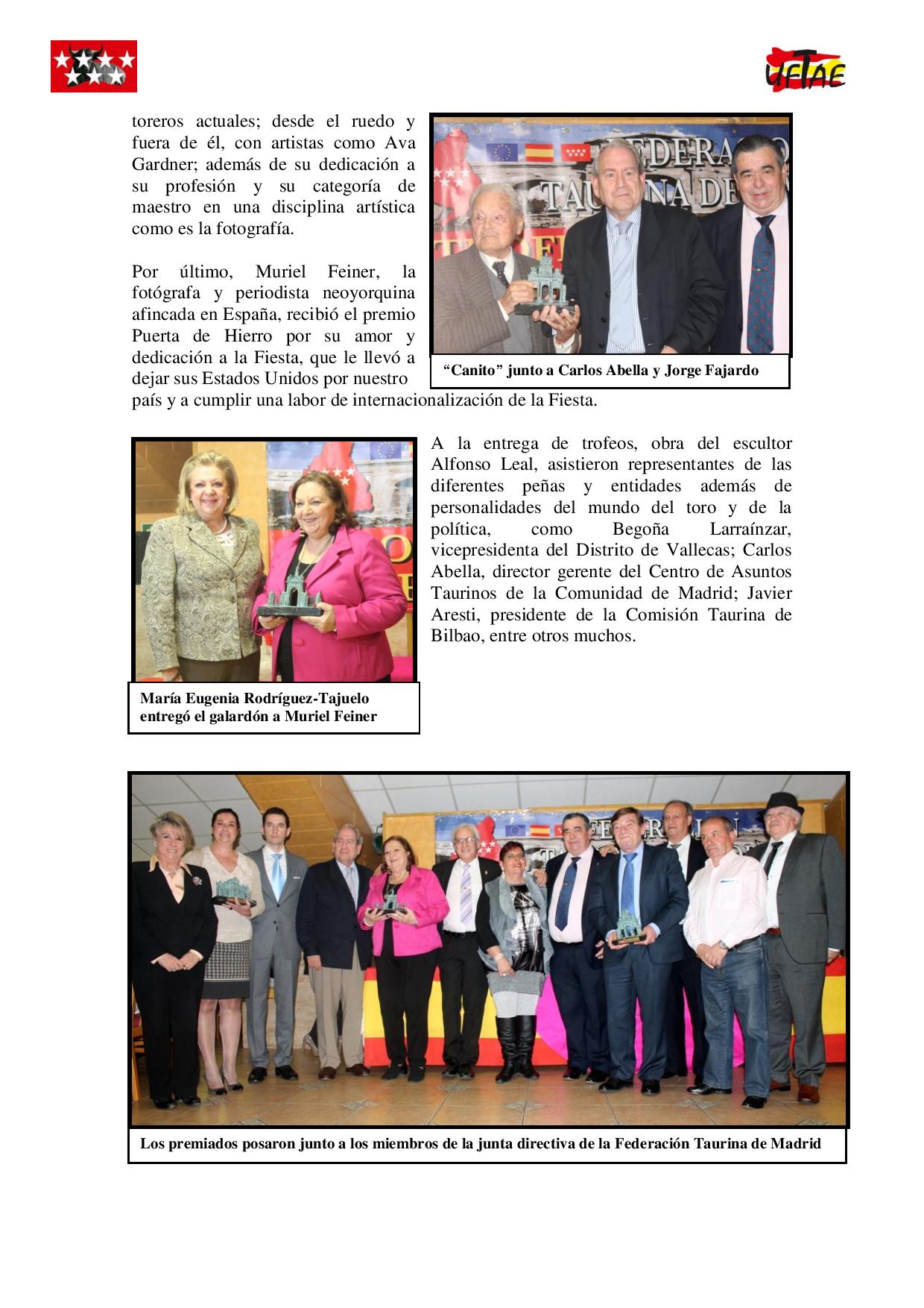 Federación Taurina entrega sus XI Trofeos Puertas de Madrid