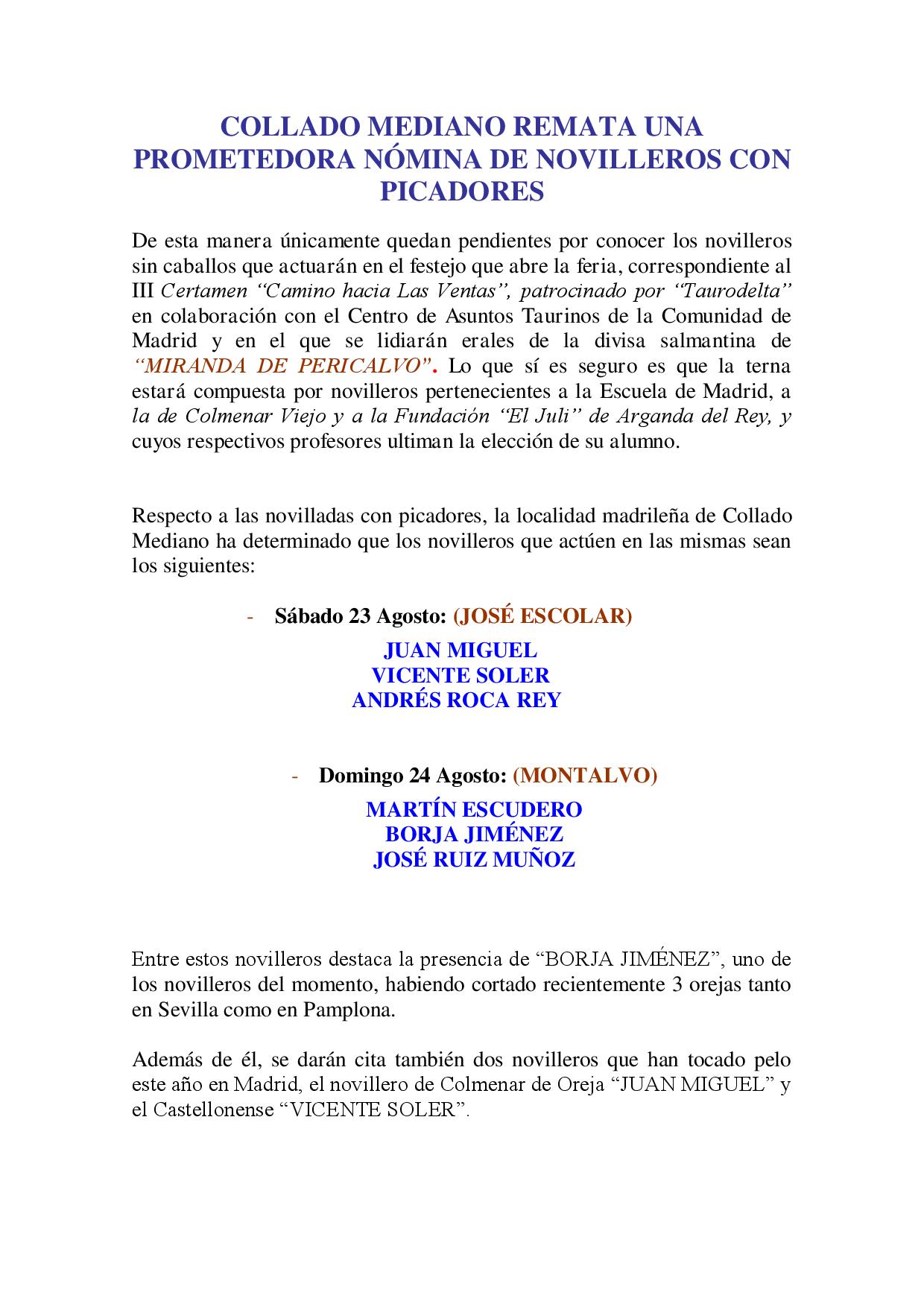 Feria de Novilladas de Collado Mediano 2014