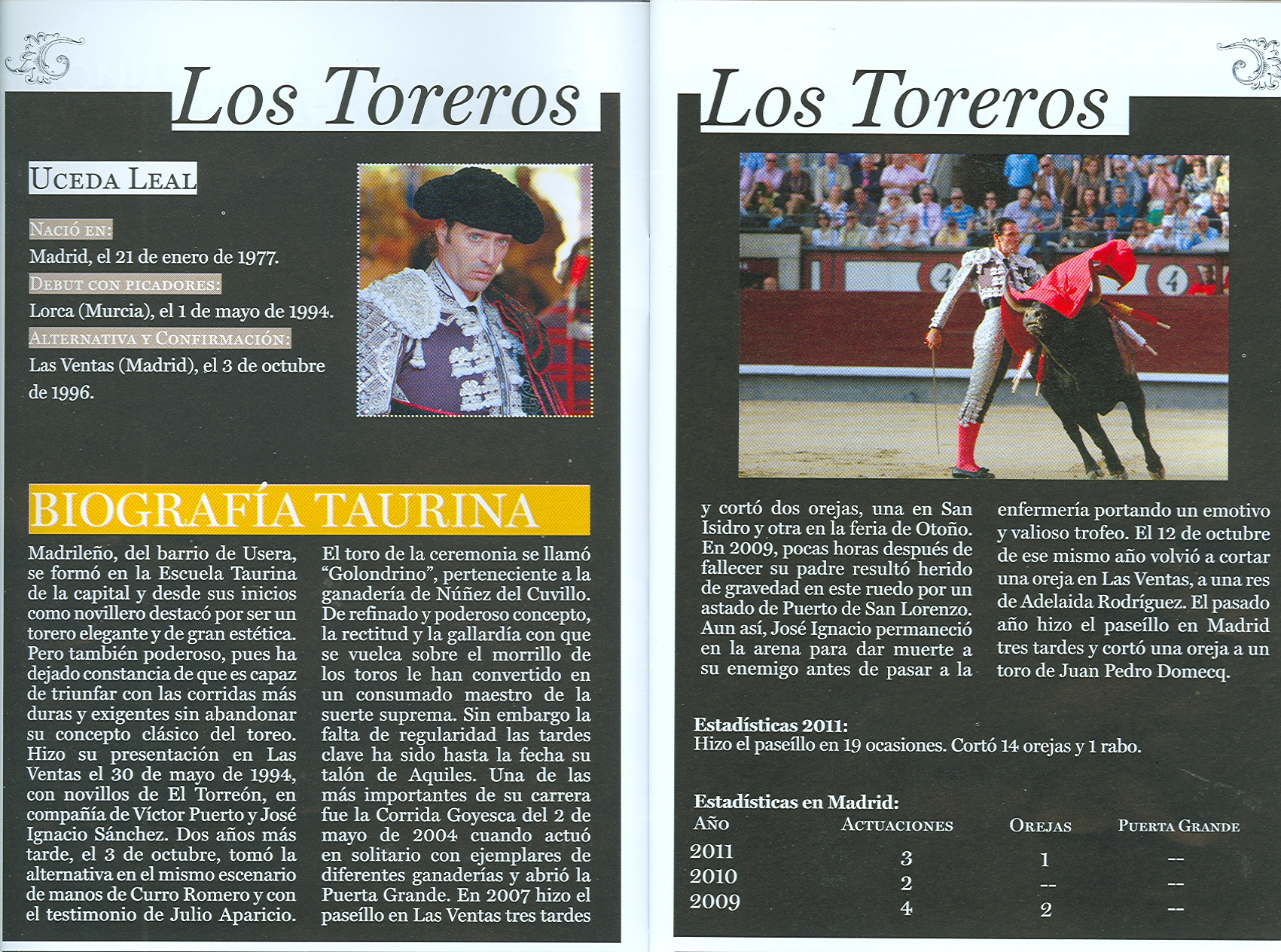 José Ignacio Uceda Leal es un ejemplo de buen torear, tiene clase, temple y finura de formas, le faltó toro y el compromiso no pudo llegar a más. Con el estoque dejó ver su máxima categoría de estoqueador con arreglo a los cánones clásicos, perfilado en el centro de la suerte y yéndose detrás de la espada con rectitud jugando la muleta al pitón izquierdo para que humille el toro y descubra la muerte, a la vez que le marca