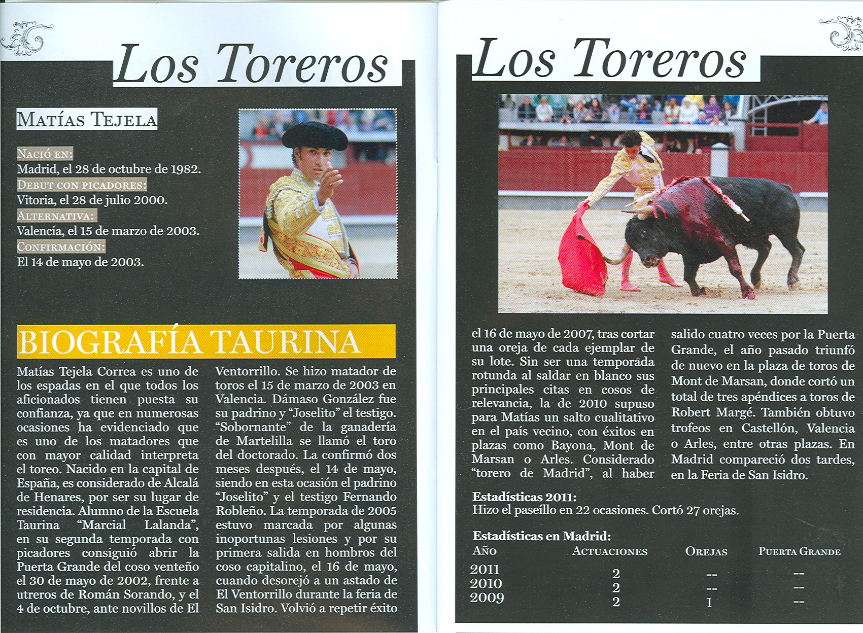 El madrileño Matías Tejela, el albaceteño Miguel Tendero y el salmantino Juan del Alamo dieron cuenta del encierro de referencia con las características del toreo que se practica hoy salvo en sonrosas excepciones. Citando fuera de cacho, sin cruzarse y sin adelantar la muleta para someter al toro, templando la embestida y traerle toreado para sacar pases ligados, pero estos astados requerían otra lidia, dada su condición de mansorrones. Había que doblarse con ellos para someterlos.