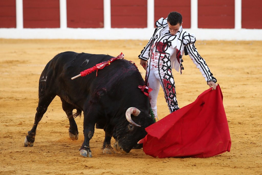 GRAF402. Antequera (Málaga), 24/08/2019.- El diestro David de Miranda en su faena con la muleta durante la corrida goyesca celebrada esta tarde en la plaza de toros de Antequera, compartiendo cartel con José María Manzanares y Morante de la Puebla. EFE/Daniel Pérez.
