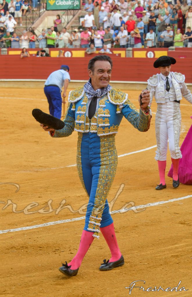 Manuel Jesús «El Cid», que sustituía a Cayetano (de azul rey y oro): estocada entera desprendida (oreja con petición); estocada entera algo trasera (oreja).
