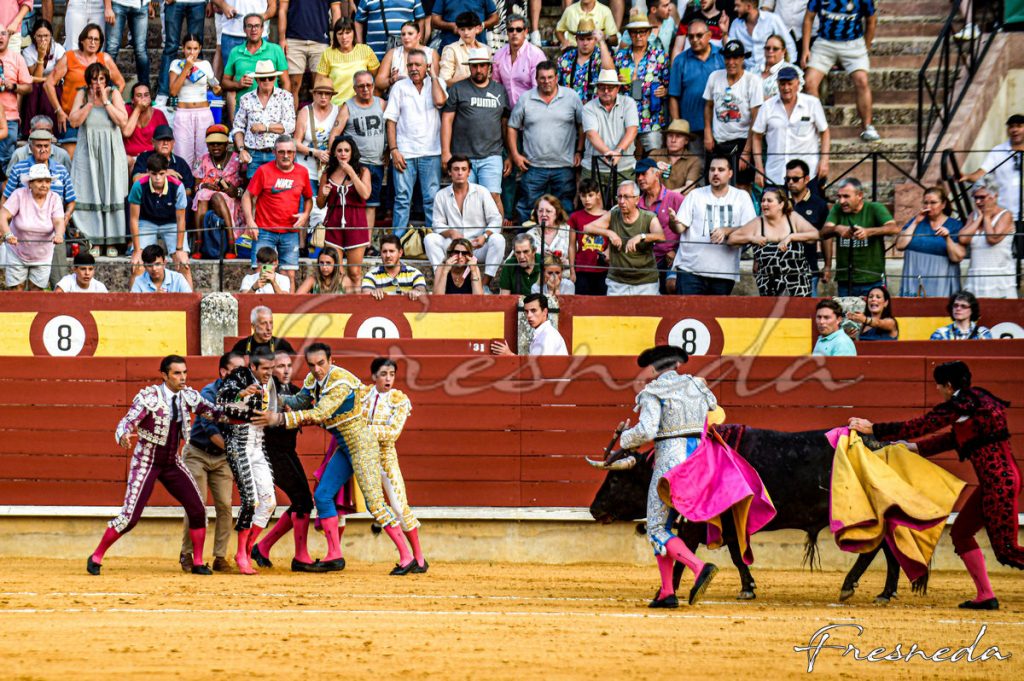 La conmoción se tornó alivio cuando De Justo se pudo poner en pie por sí mismo y, aunque con una tremenda paliza encima, fue capaz de recoger las dos orejas pedidas y concedidas, ganándose la puerta grande.