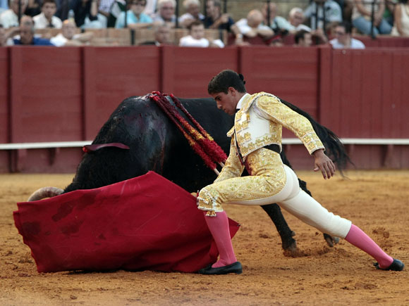 En el cuarto, el mexicano se fue a portagayola protagonizando unos segundos de gran tensión debido a que el novillo salió andando de los chiqueros. Lo arrolló una vez pasado por el capote por fortuna sin consecuencias. Repuesto del susto, Sergio Flores lo intentó todo con la muleta, tanto por la derecha como por la izquierda, pero su enemigo se revolvía pronto, daba tornillazos y terminó acortando el viaje. Lo mejor fue la estocada.