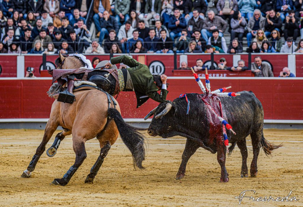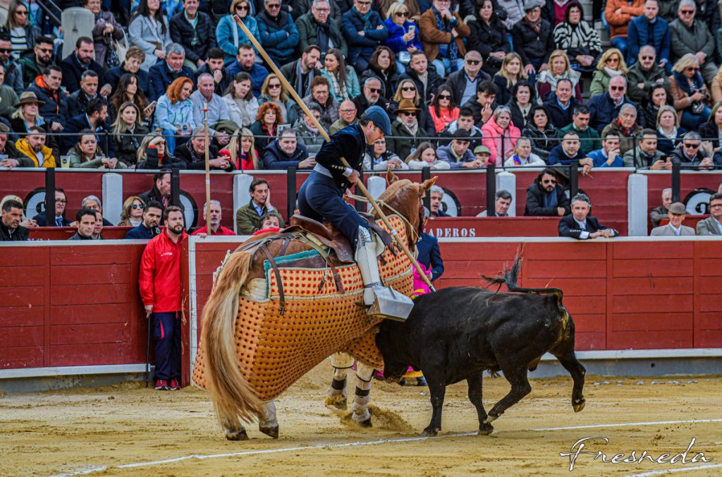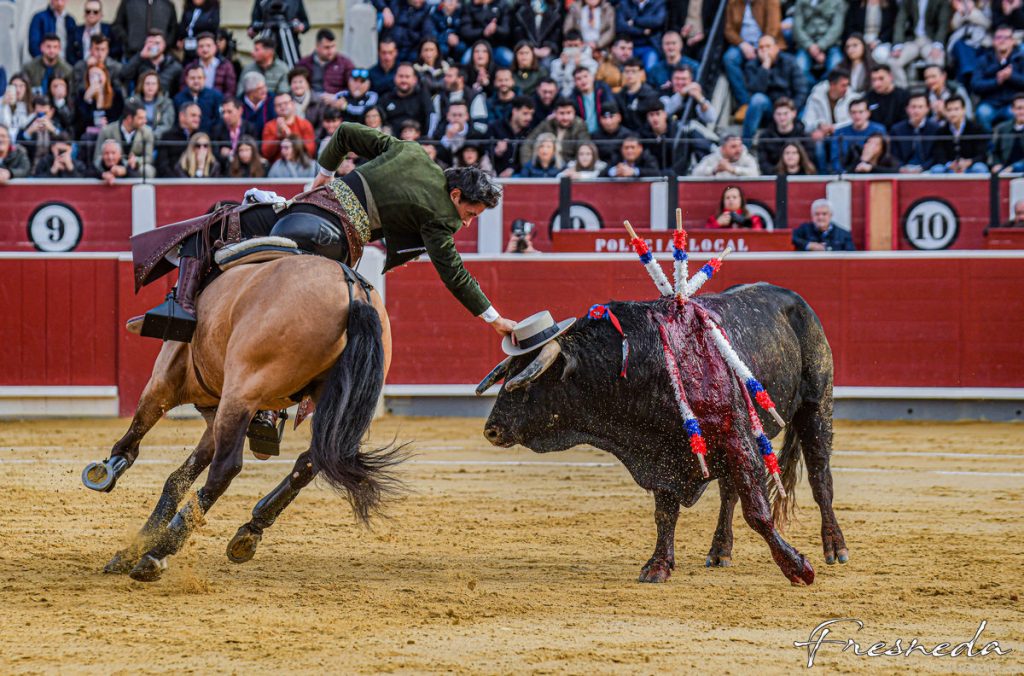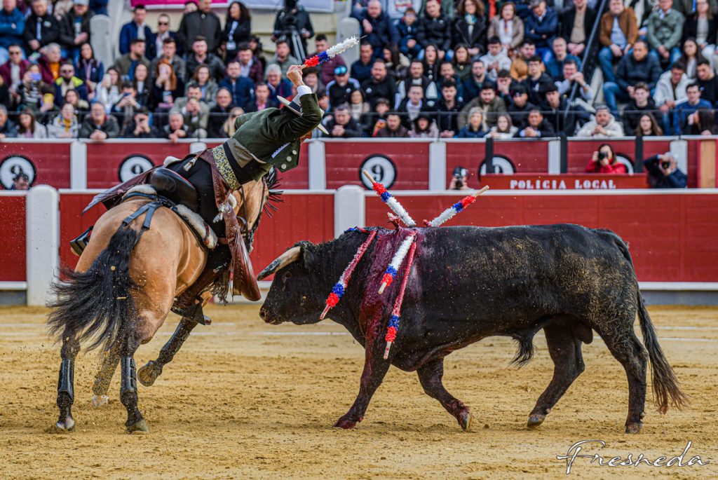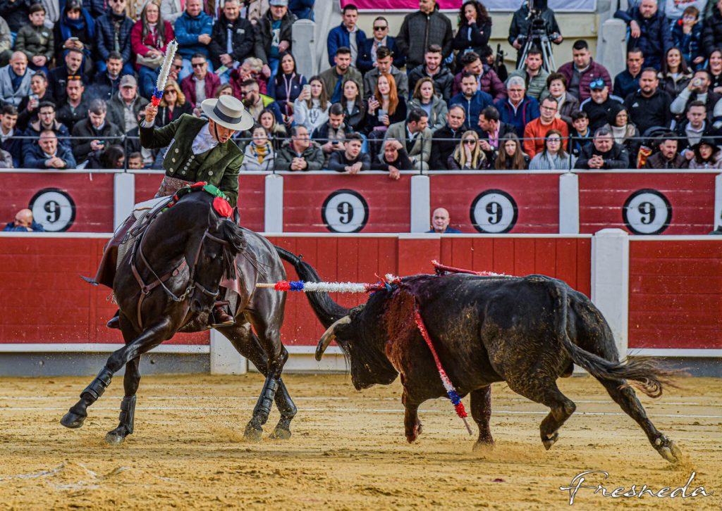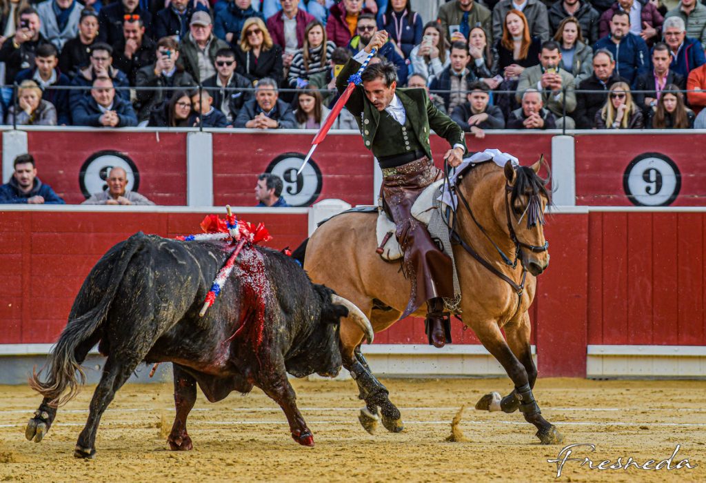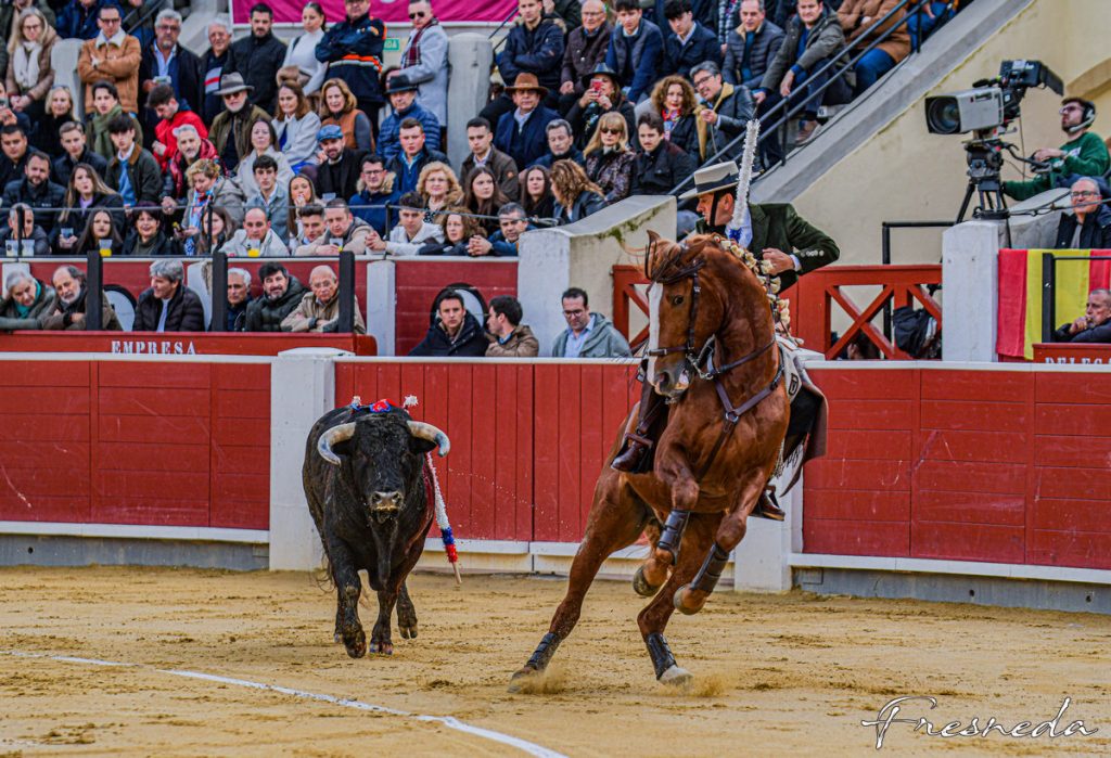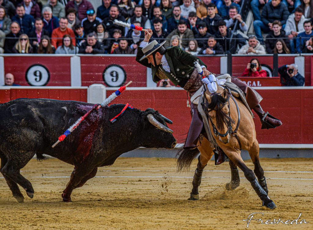 Abrió el festival un novillo gacho y noble de Los Espartales abanto de salida, al que fue templando poco a poco Diego Ventura de salida. Comenzó el tercio de banderillas sobre ‘Quirico’, con el que dejó momentos de mucha emoción, pasando muy cerca del toro en los encuentros. Una faena entregada que caló en los tendidos. Continuó luciéndose sobre ‘Oro Negro’ y remató con unas banderillas cortas a lomos de ‘Brillante’. Acertó con el rejón de muerte al segundo intento. Oreja.