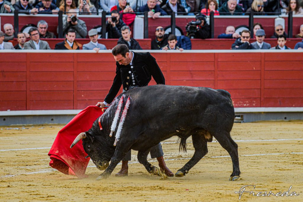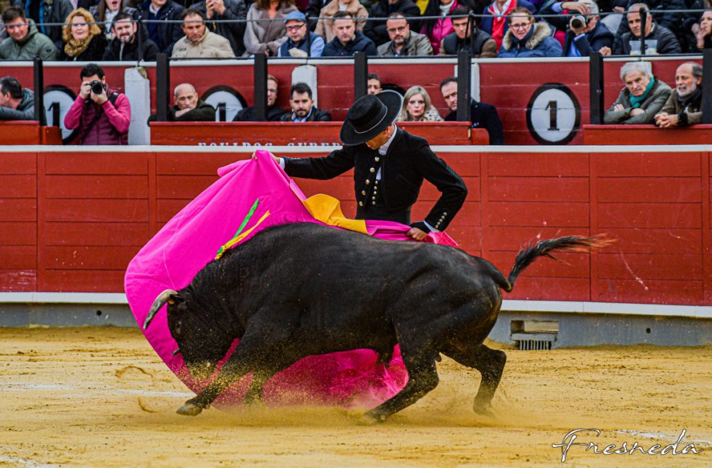 Regaló José Fernando Molina un sobrero de Domingo Hernández, un novillo bien presentado que acometió con clase y nobleza al capote de Molina, que lo cuajó a placer. De rodillas con unos pases cambiados por la espalda inició la faena. El novillo de Domingo Hernández fue una máquina de embestir, con clase y mucha transmisión. José Fernando Molina lo cuajó con unas series ligadas, toreando en redondo sobre la mano derecha. Por el pitón izquierdo mantuvo el animal su gran condición, embistiendo con el pitón de adentro. Varios circulares invertidos ligados levantaron las peticiones de indulto entre el público. Finalmente, el presidente atendió la petición y sacó el pañuelo naranja. Ya había actuado ante el quinto, un novillo con presencia de Daniel Ruiz al que le cuajó una faena firme y meritoria pese a su complejidad, malograda con los aceros.