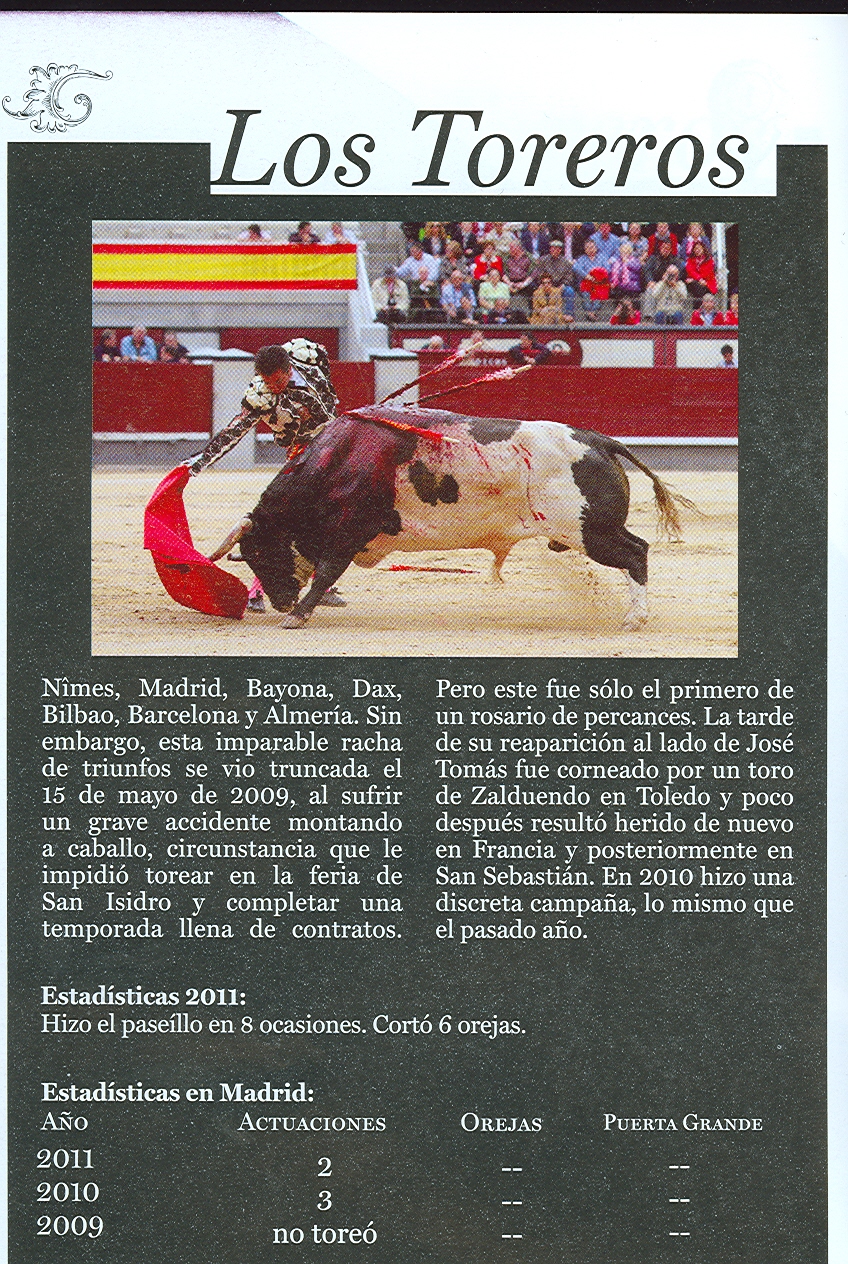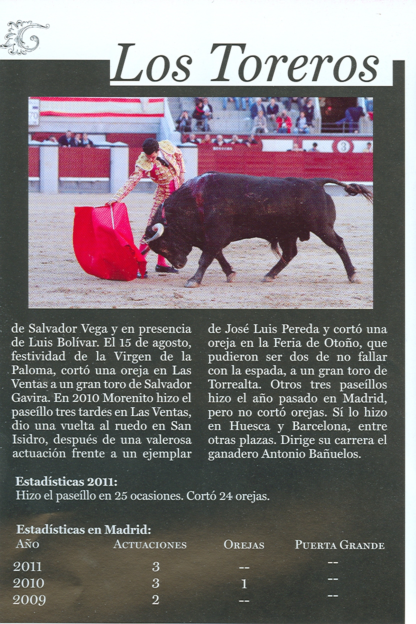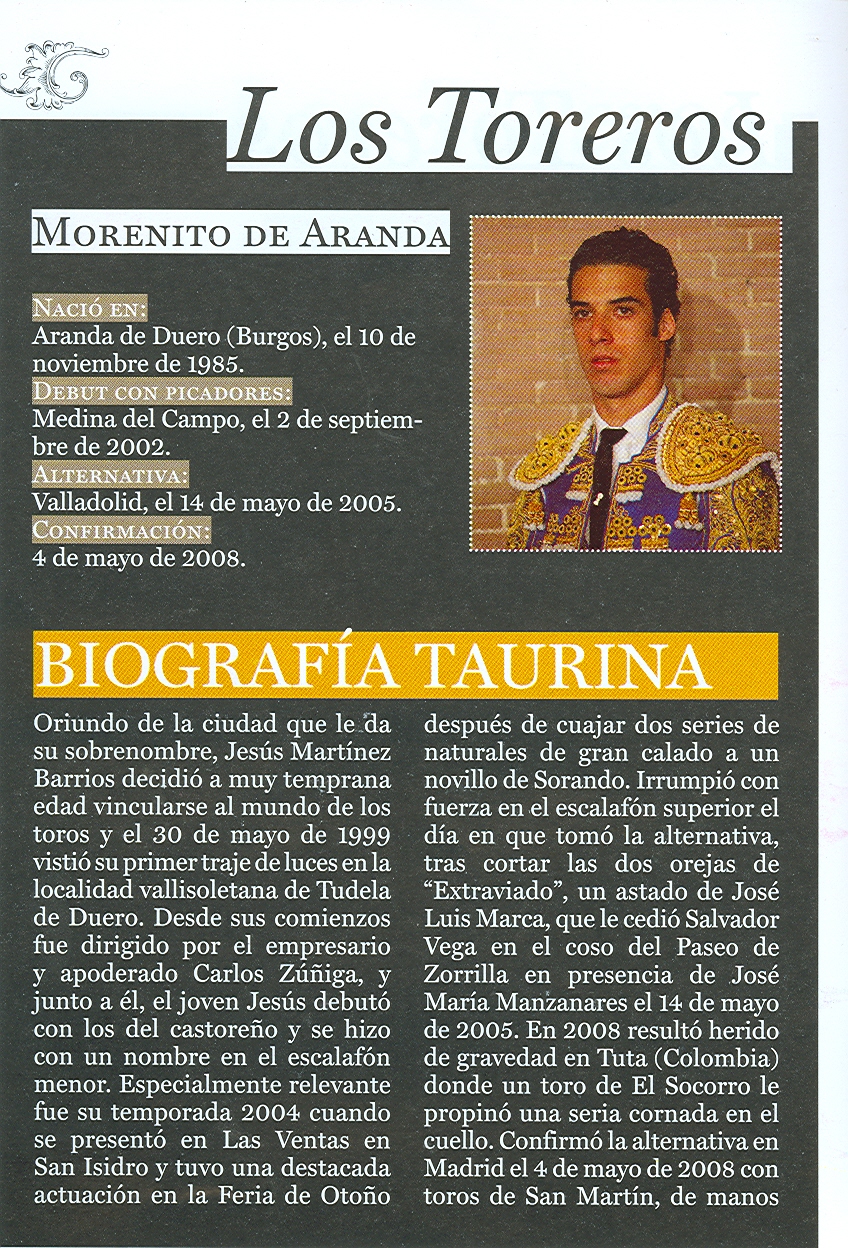 Morenito de Aranda que atacó con el brazo suelto tumbó al tercero. De una estocada y dió vuelta al ruedo al sexto lo remató de una estocada entrando también con el brazo suelto, hubo petición de oreja con vuelta al ruedo.