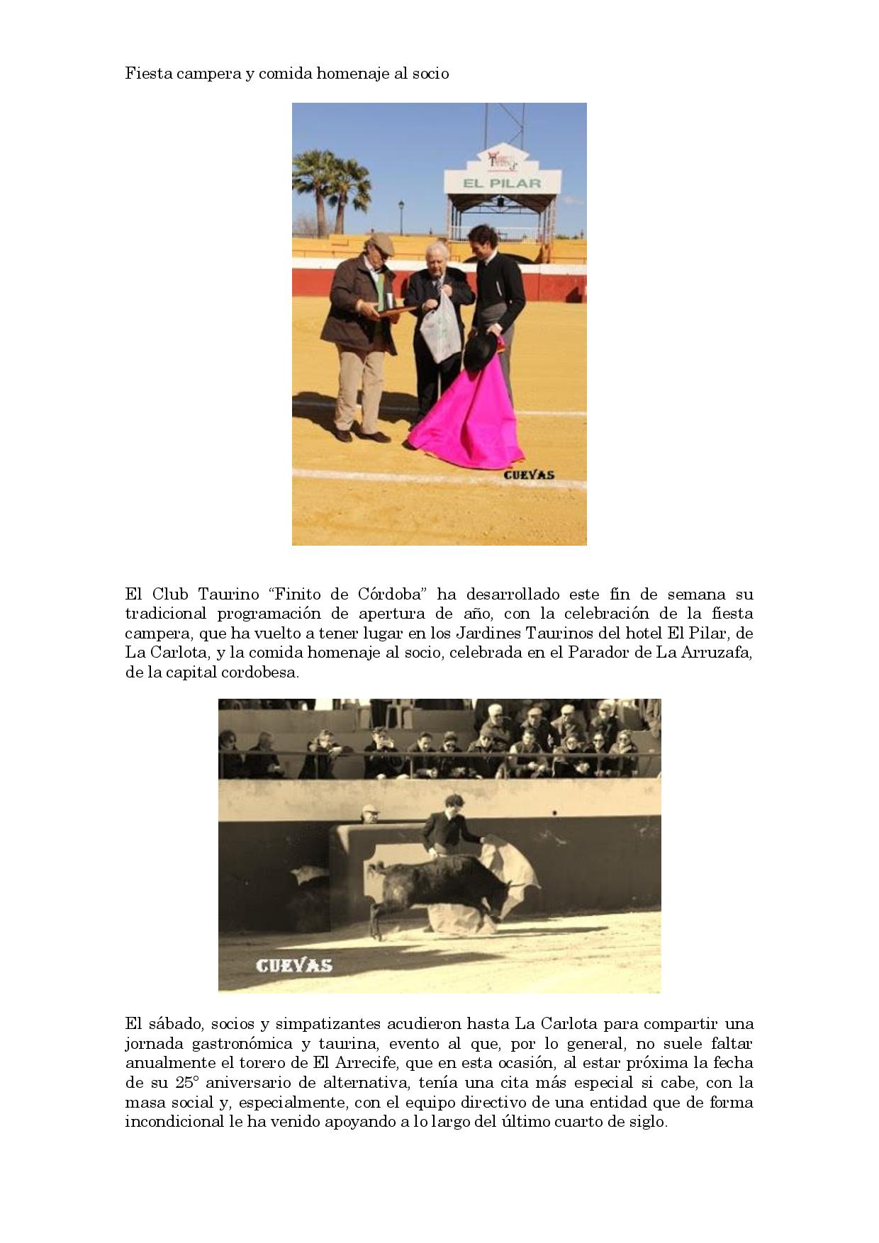 Fin de semana de actos sociales en el Club Taurino `Finito de Córdoba y su Tauromaquia´