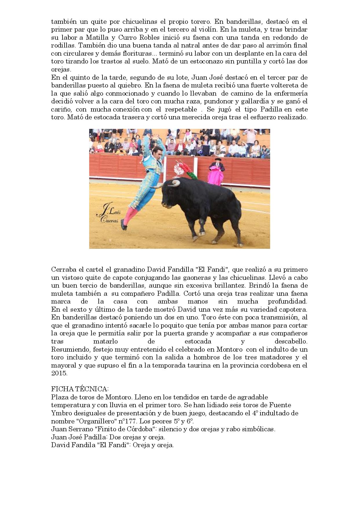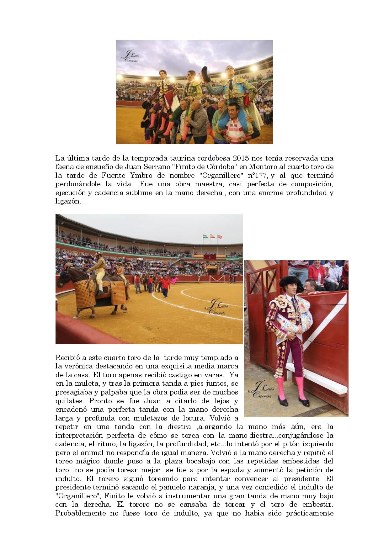 Finito indulta a `Organillero´ borda el toreo en Montoro